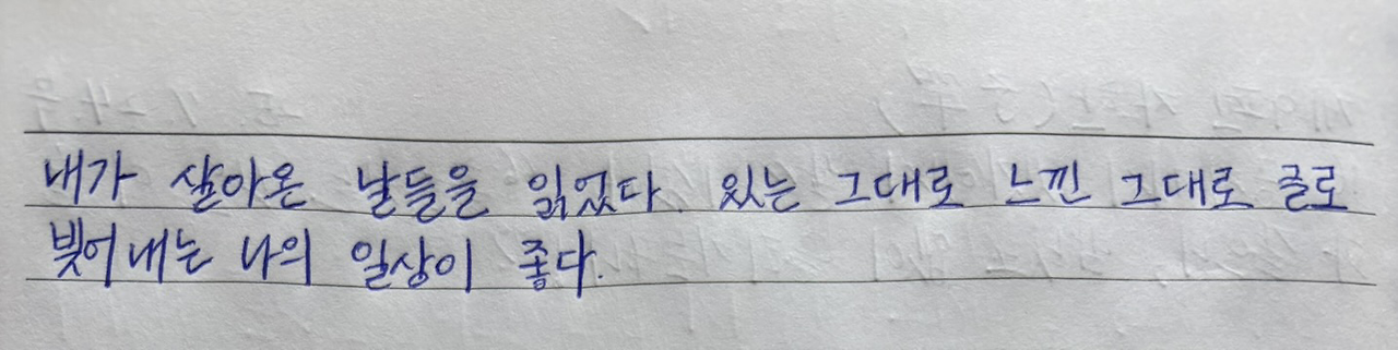 어제의 나, 오늘 아침의 나, 방금 전까지의 나를 곱씹어 보며 한 자 한 자 적는다.