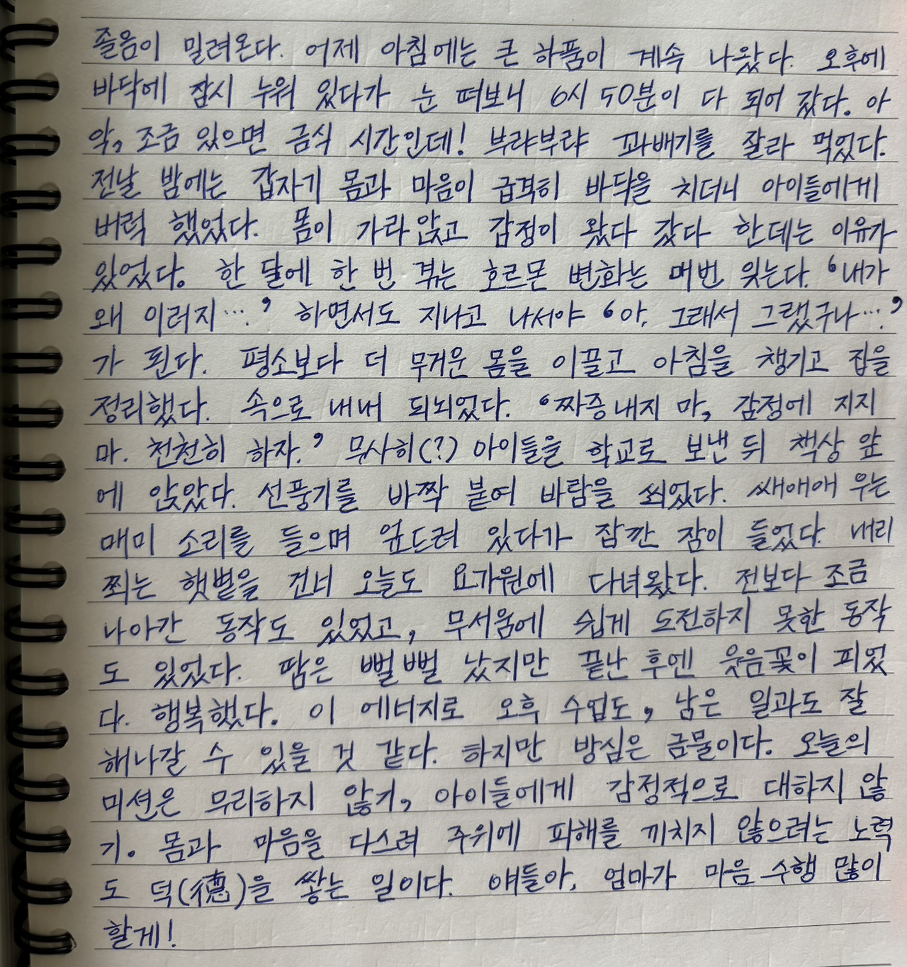 오늘의 미션은 무리하지 않기, 아이들에게 감정적으로 대하지 않기.