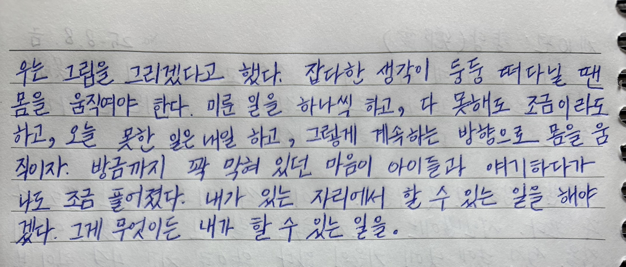 내가 있는 자리에서 할 수 있는 일을 해야겠다.