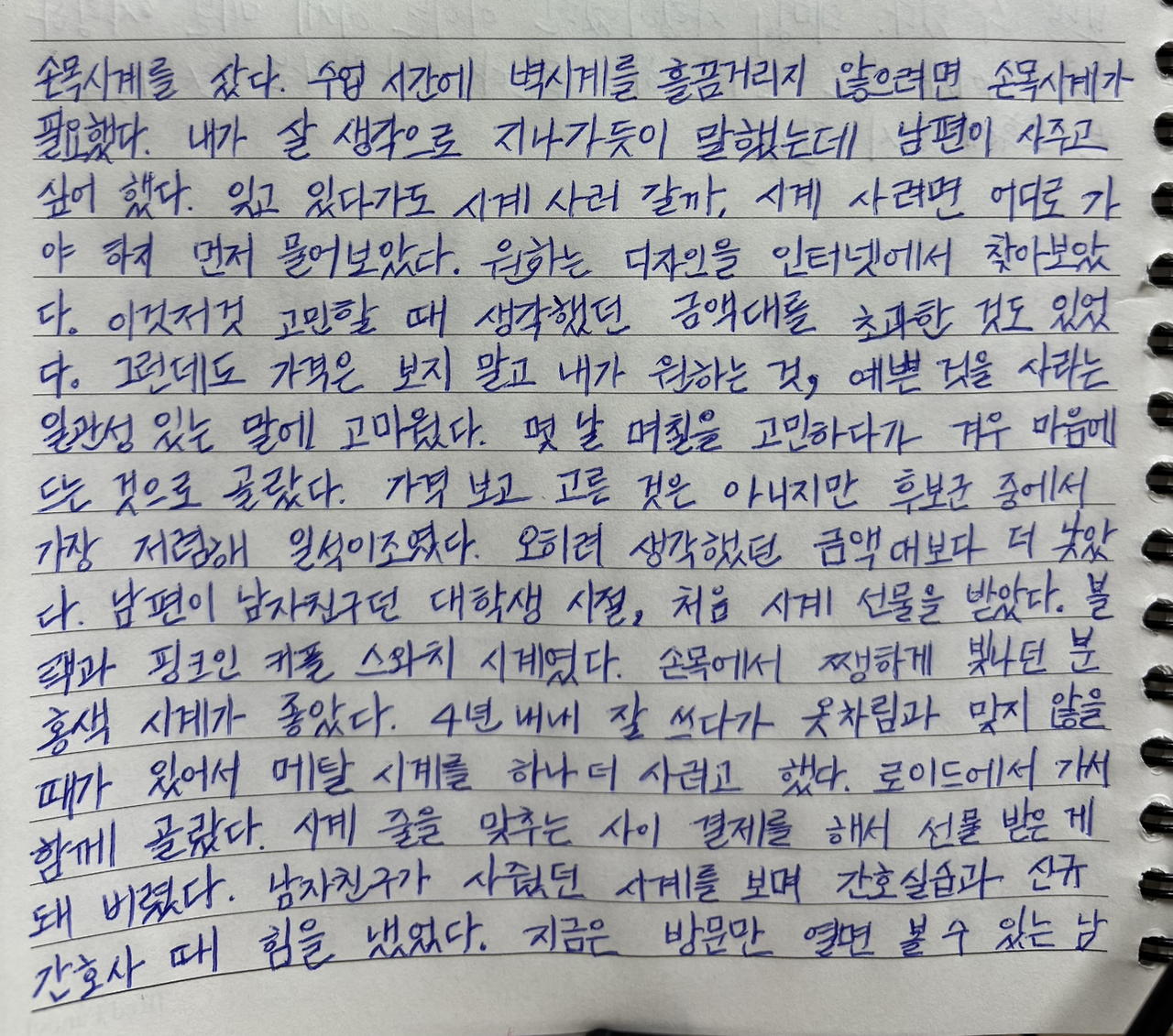 손목에서 쨍하게 빛나던 분홍색 시계가 좋았다.