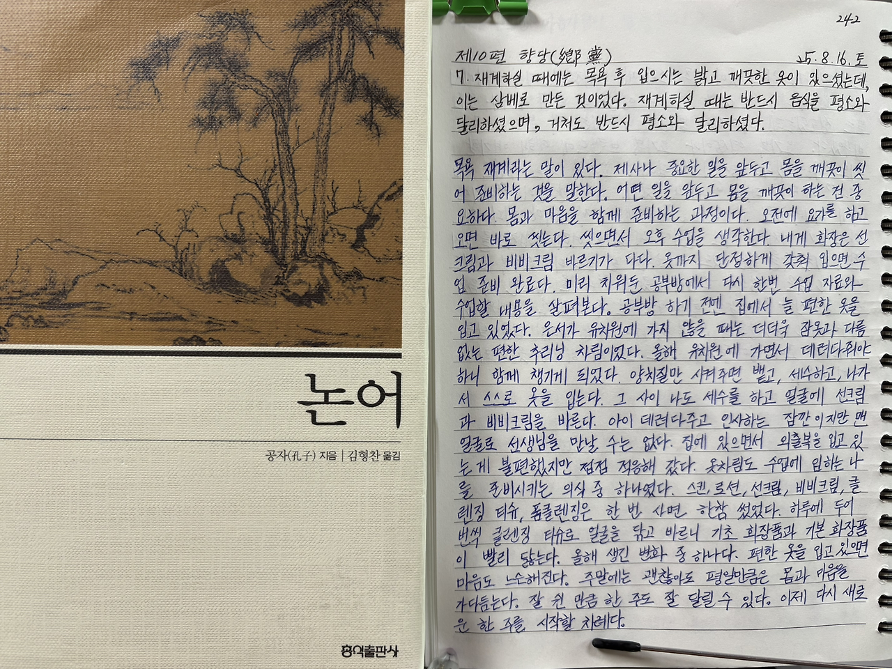 옷까지 단정하게 갖춰 입으면 수업 준비 완료다.