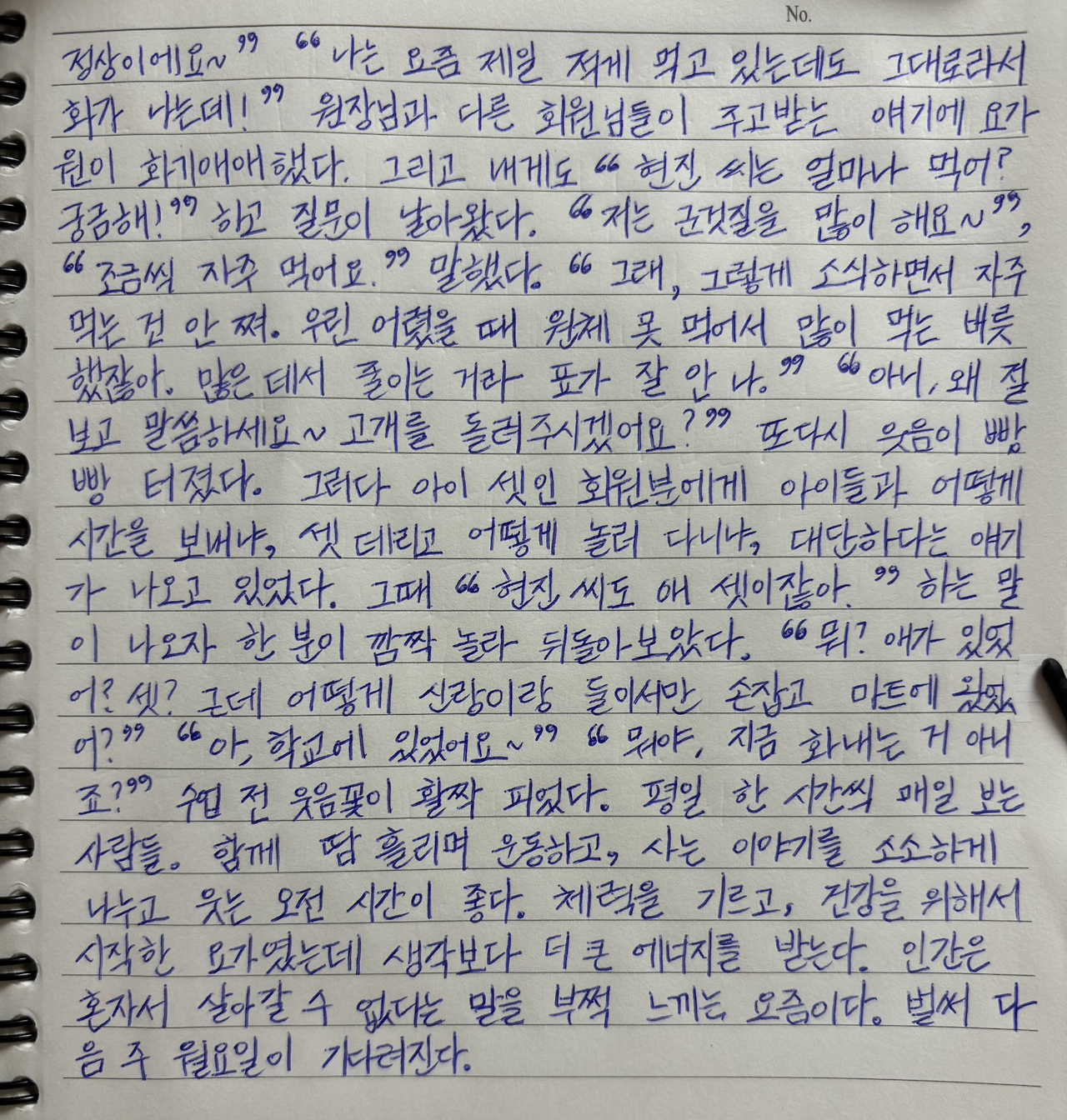 원장님과 다른 회원님들이 주고받는 얘기에 요가원이 화기애애했다.