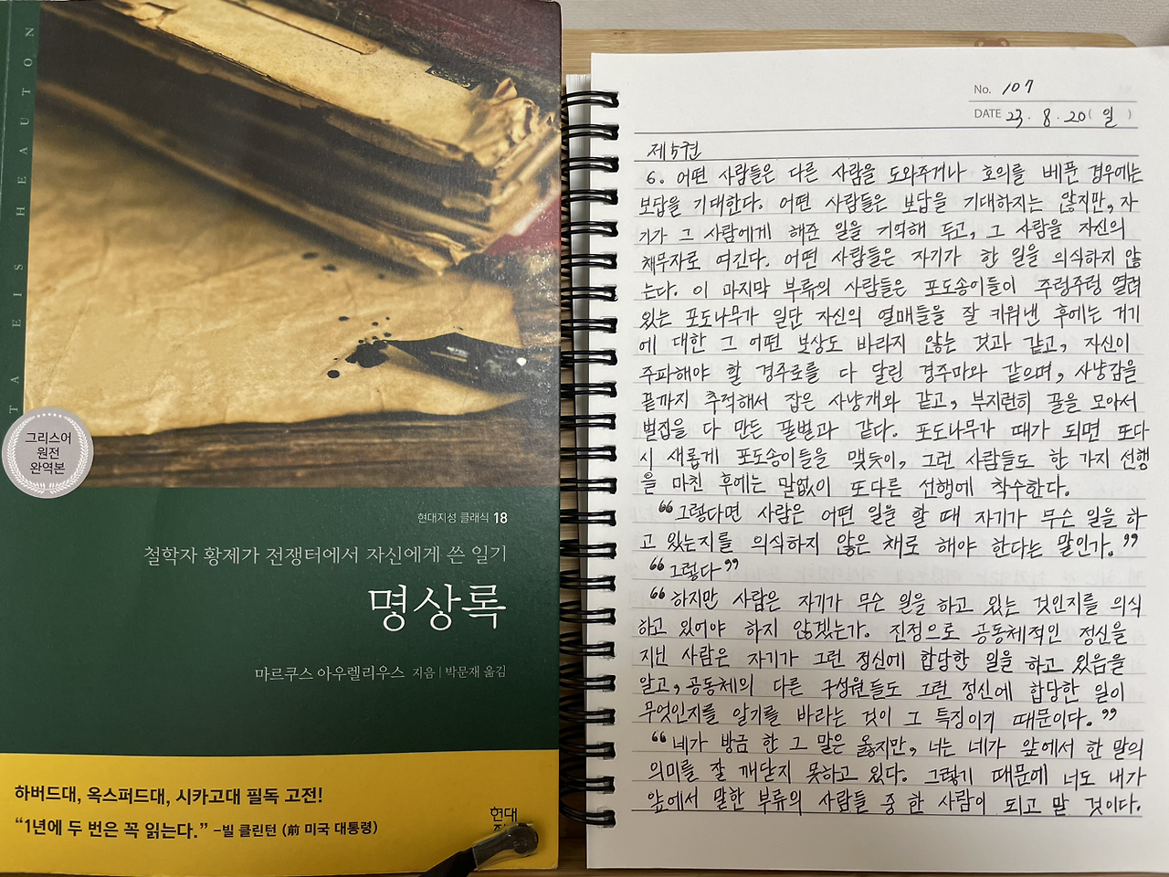 매일 《명상록》을 필사하고 떠오르는 생각을 함께 적고 있습니다.