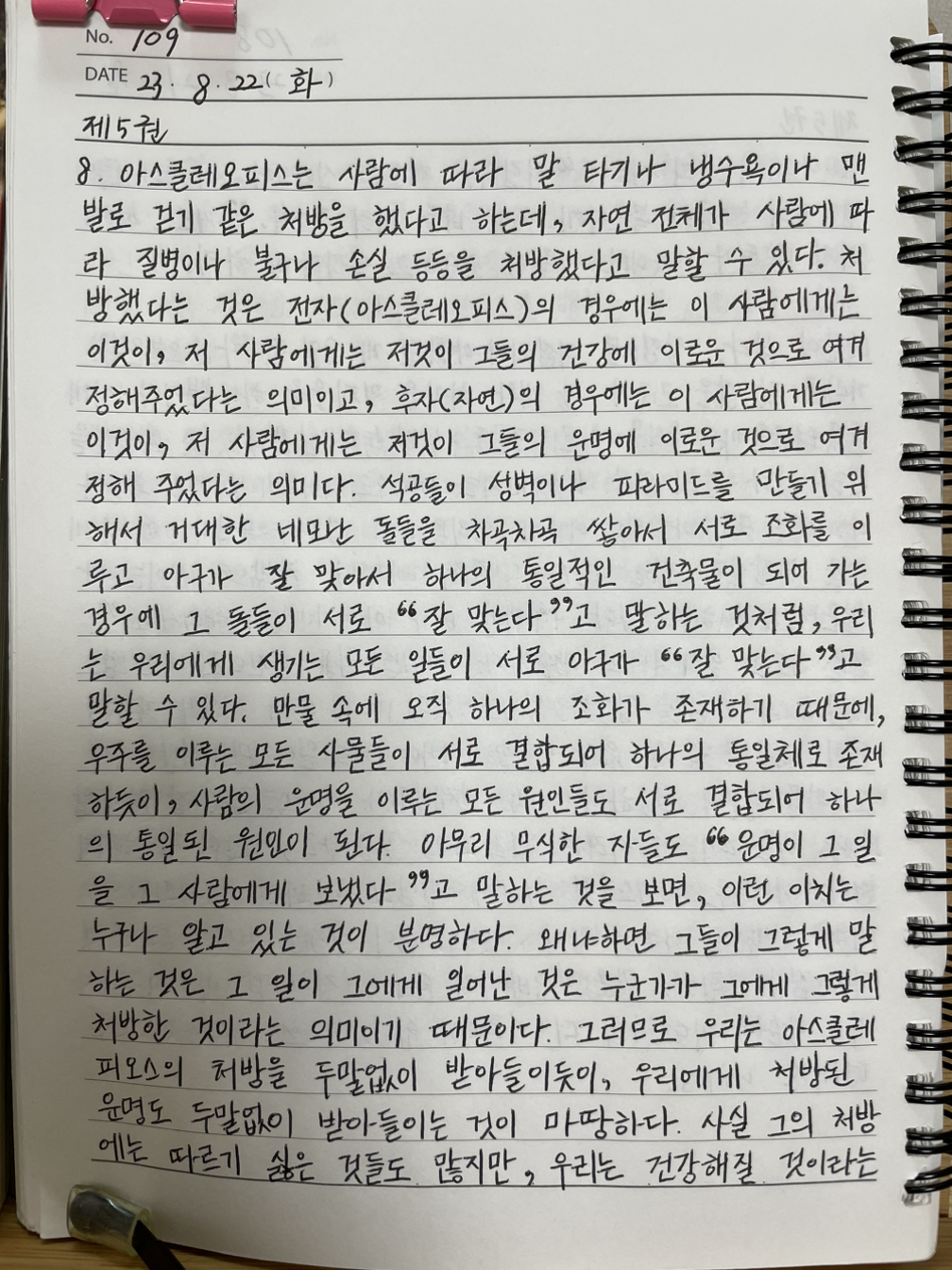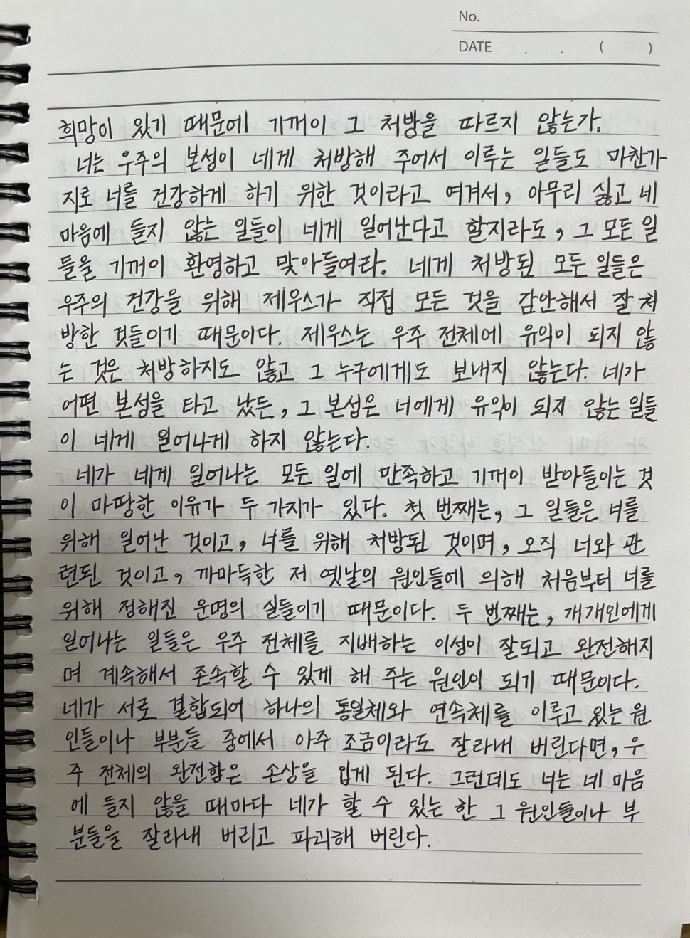 매일 《명상록》을 필사하고 떠오르는 생각을 함께 적고 있습니다.