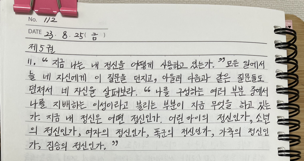 매일 《명상록》을 필사하고 떠오르는 생각을 함께 적고 있습니다.