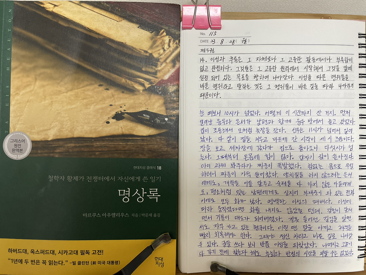매일 《명상록》을 필사하고 떠오르는 생각을 함께 적고 있습니다.