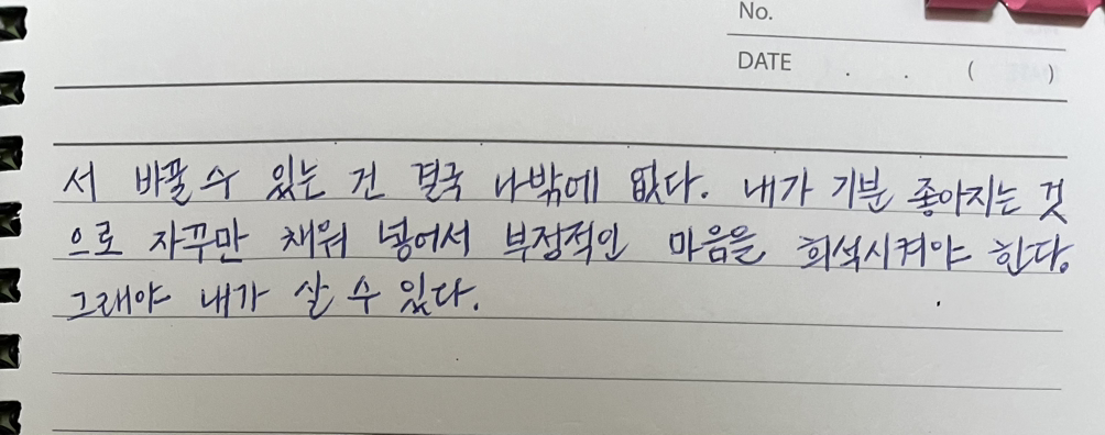 내가 기분 좋아지는 것으로 자꾸만 채워 넣어서 부정적인 마음을 희석시켜야 한다.