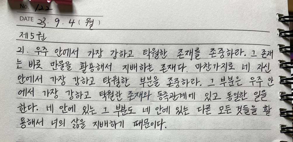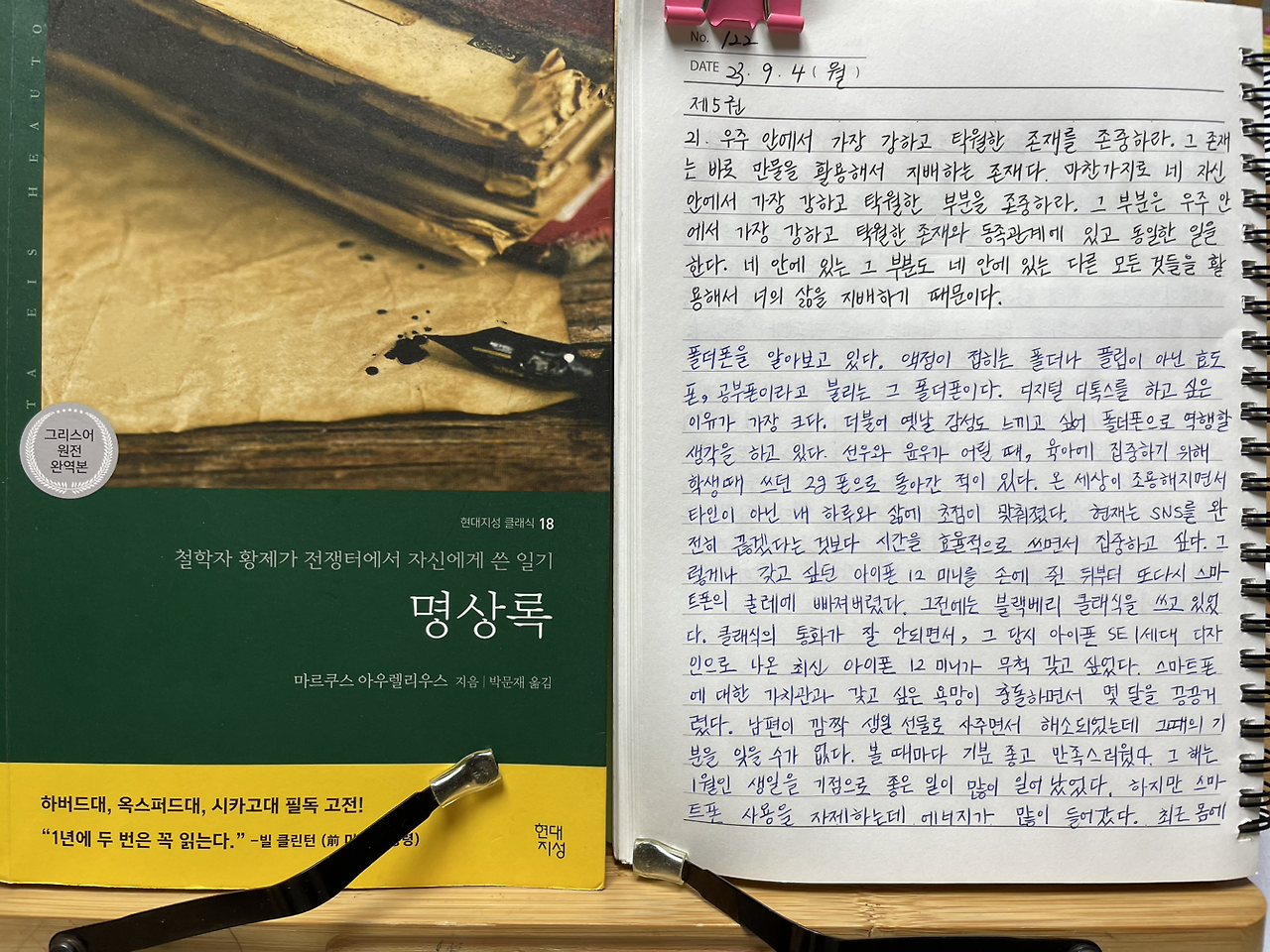 매일 《명상록》을 필사하고 떠오르는 생각을 함께 적고 있습니다.