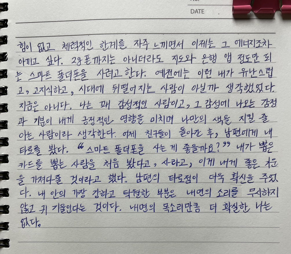 최근 몸에 힘이 없고 체력적인 한계를 자주 느끼면서 이제는 그 에너지조차 아끼고 싶다.