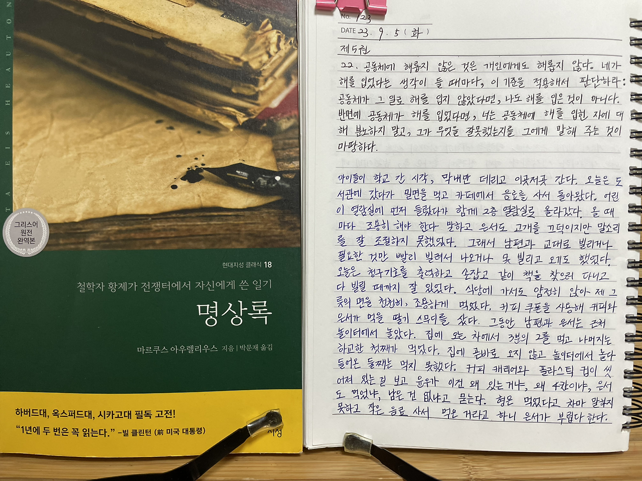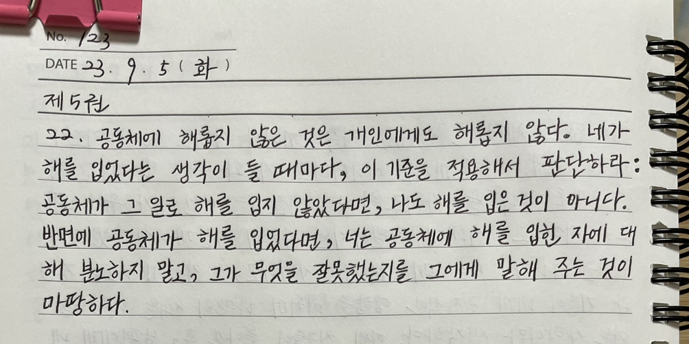 매일 《명상록》을 필사하고 떠오르는 생각을 함께 적고 있습니다.