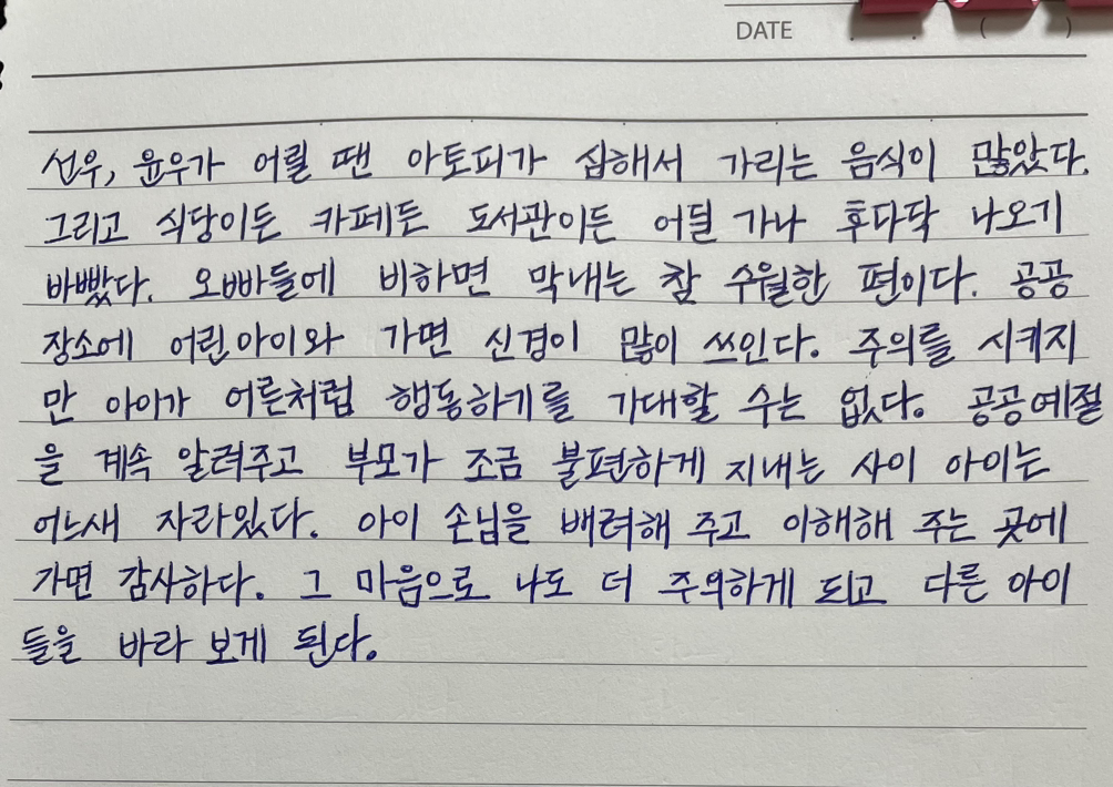 그 마음으로 나도 더 주의하게 되고 다른 아이들을 바라보게 된다.