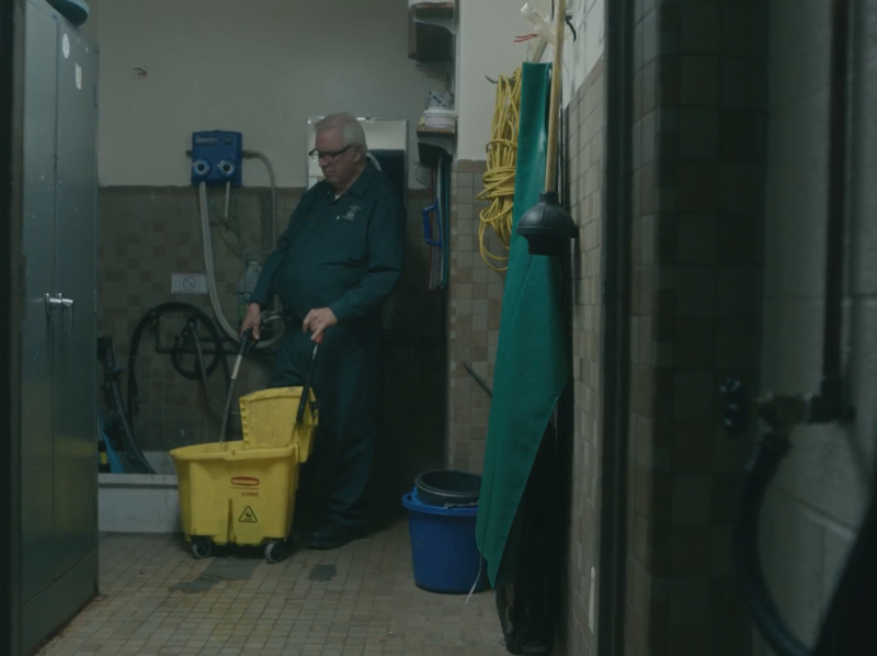본체 제이크는 한 고등학교의 청소원이다. 흰머리가 가득하고, 등은 굽고 배가 나온, 우울한 노인.