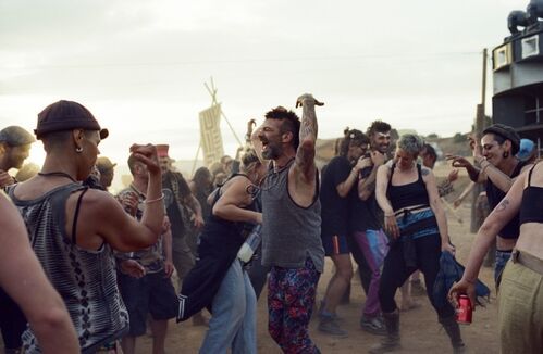모로코의 사막, 거대한 스피커 벽에서 뿜어져 나오는 테크노 음악에 맞춰 수백 명의 레이버(Raver)들이 무아지경으로 춤춘다.