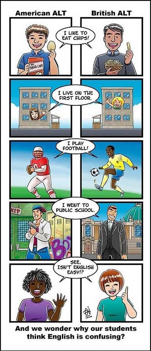 물론 미국식 영어와 영국식 영어가 차이가 나기는 합니다. 우리가 흔히 알고 있는 "T"와 "R"을 발음한다는 것 (정확한 표현은 물론 아닙니다)을 포함해 여러가지 발음, 단어, 영어 사용용례들, 그보다 근본적으로는 표현하는 방식이나 유머의 구성 같은 방식에서도 차이가 나구요, 심지어 같은 단어를 말했을 경우, 서로 다른 사물을 지칭하기도 하지요. 사랑스런 위키패디아에서 따온 글만 봐도, 미국식 영어는 영국식 영어의 변형이며, 심지어 미국에서조차 영국식 영어가 Standard English (표준영어)로 인식되는 경향이 있다고 할 수 있거든요. (http://en.wikipedia.org/wiki/Comparison_of_American_and_British_English 참조)