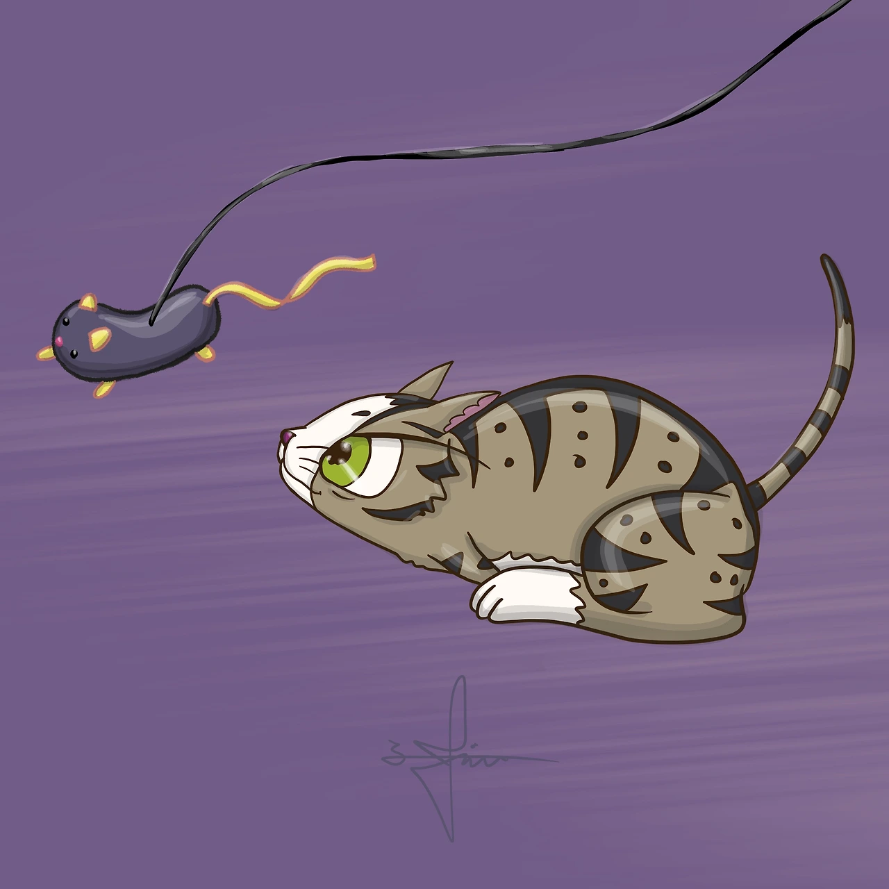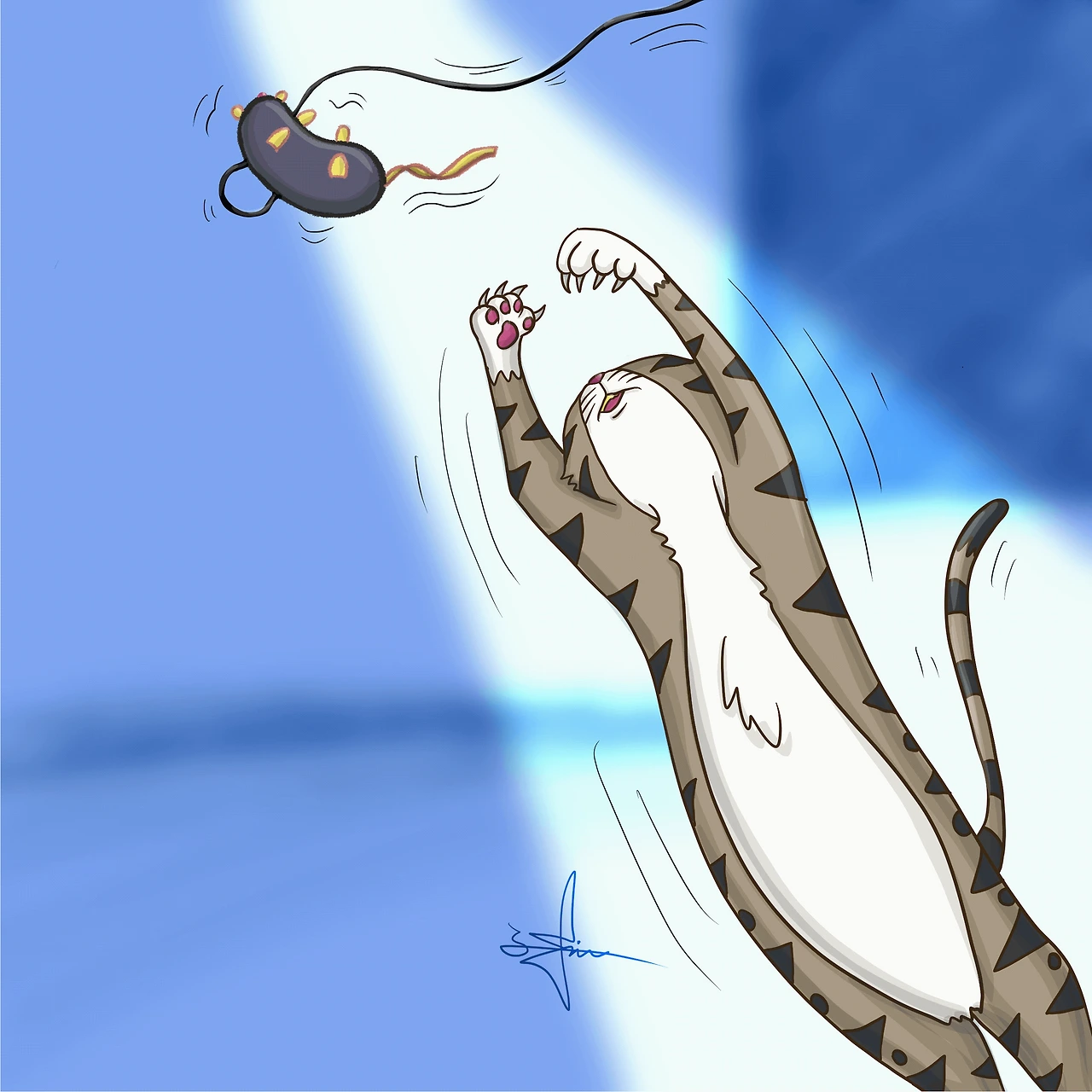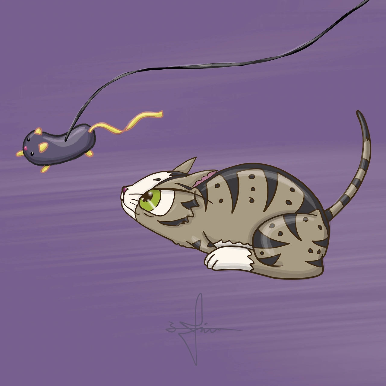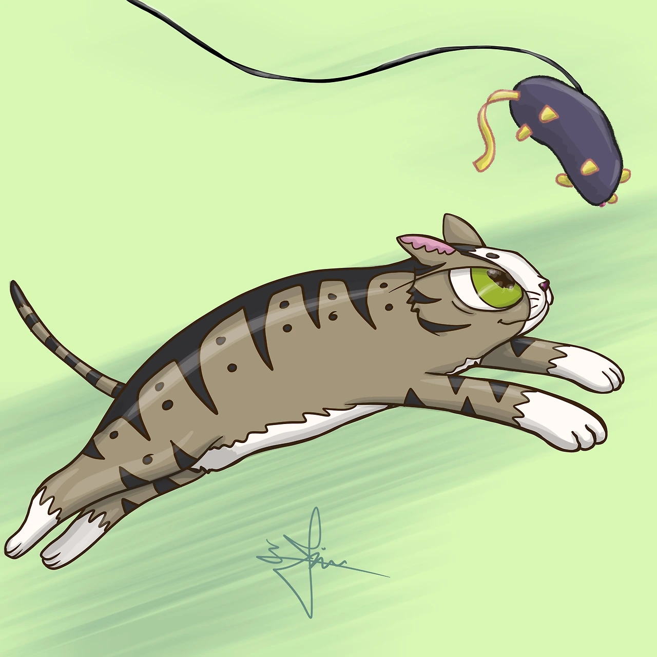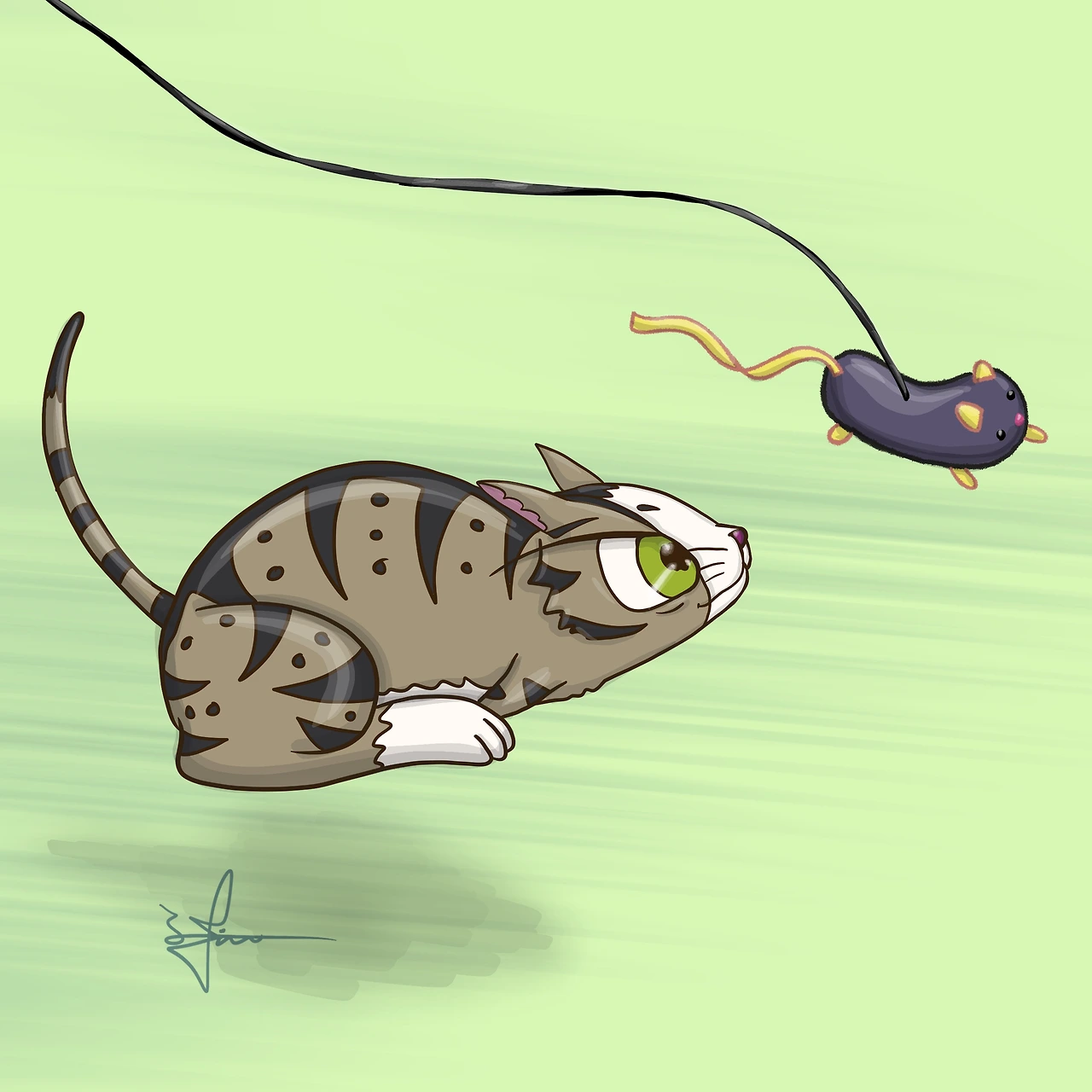 신나게 쫒는 기쁨을 보자니 더욱 신명 나게 생쥐 장난감을 흔들어 준다.