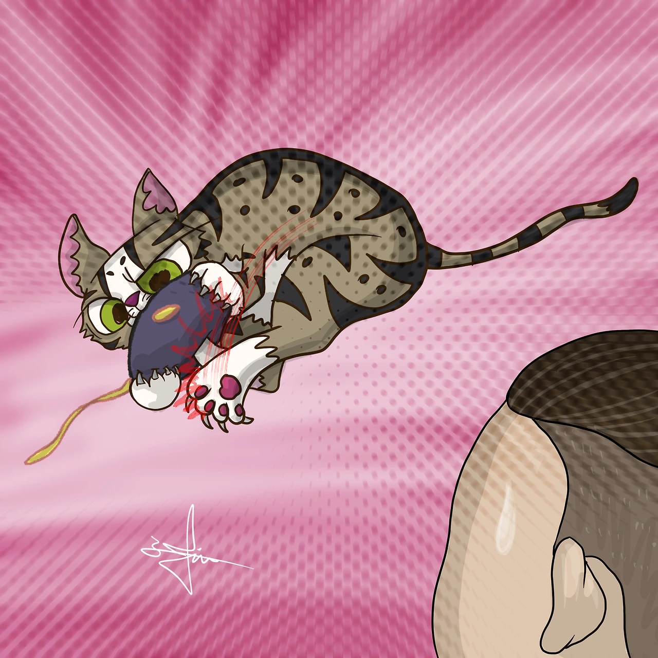 집중력을 발휘해 끝내 장난감 생쥐를 끌어안은 기쁨.