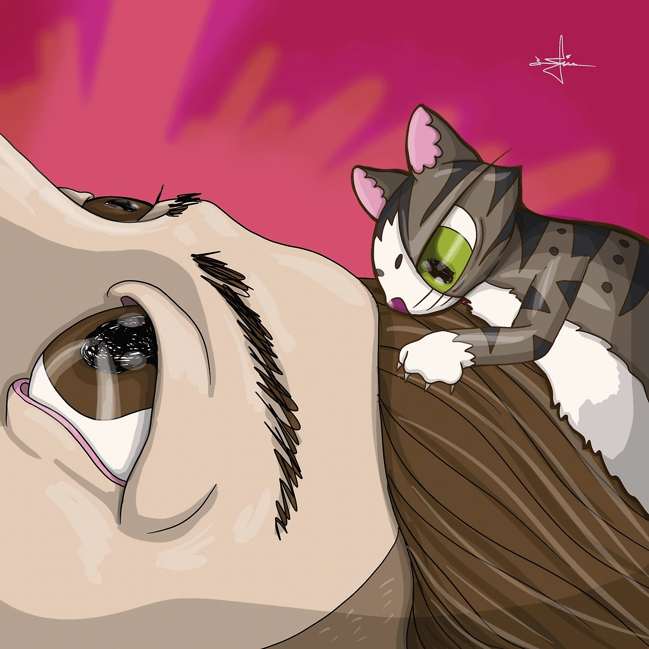 기쁨이 녀석은 발톱을 세워 내 머리카락을 쥐어뜯어내고 있었다.