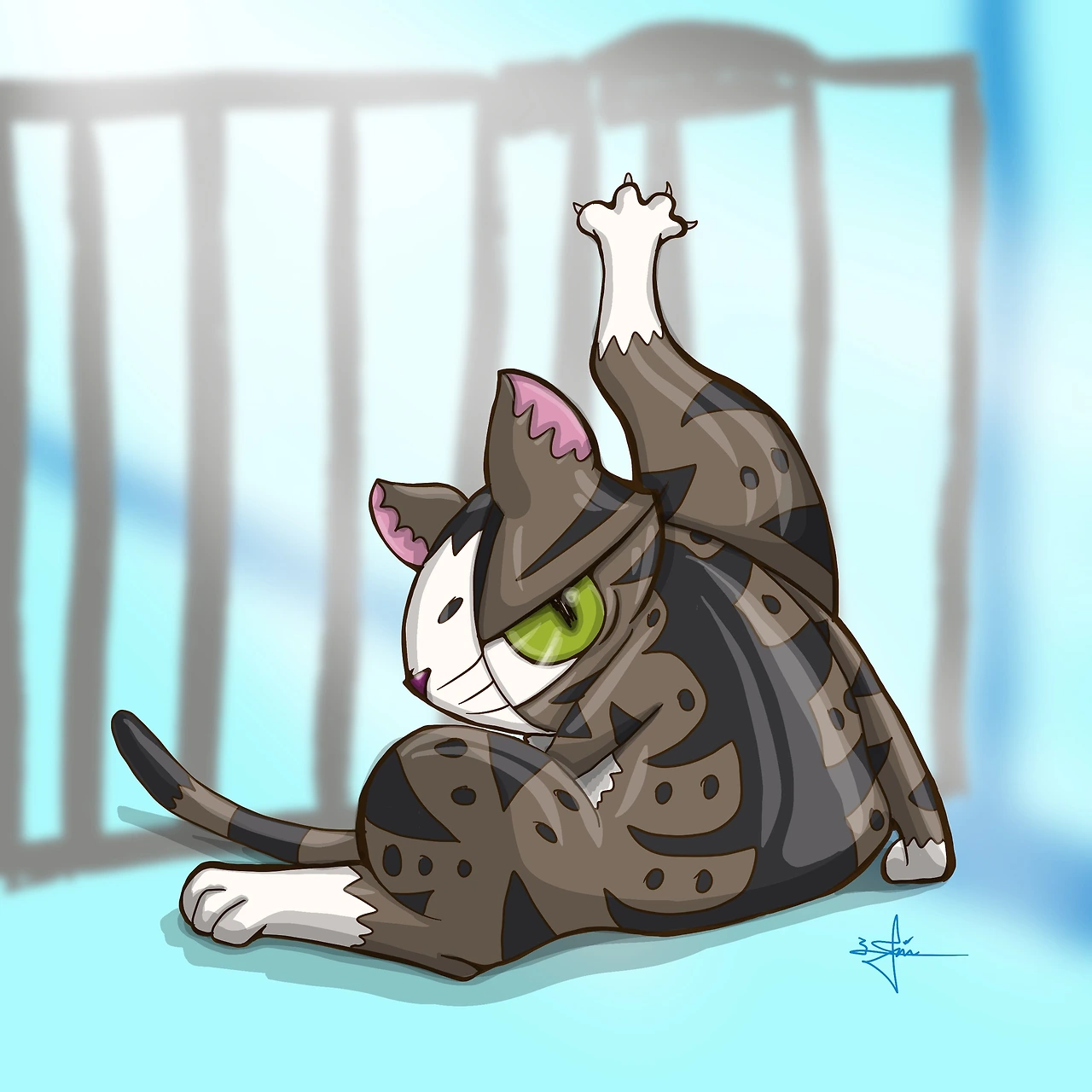 내가 일을 하면 작업실 문 바리케이드 앞에 앉아 털을 고르는 기쁨.