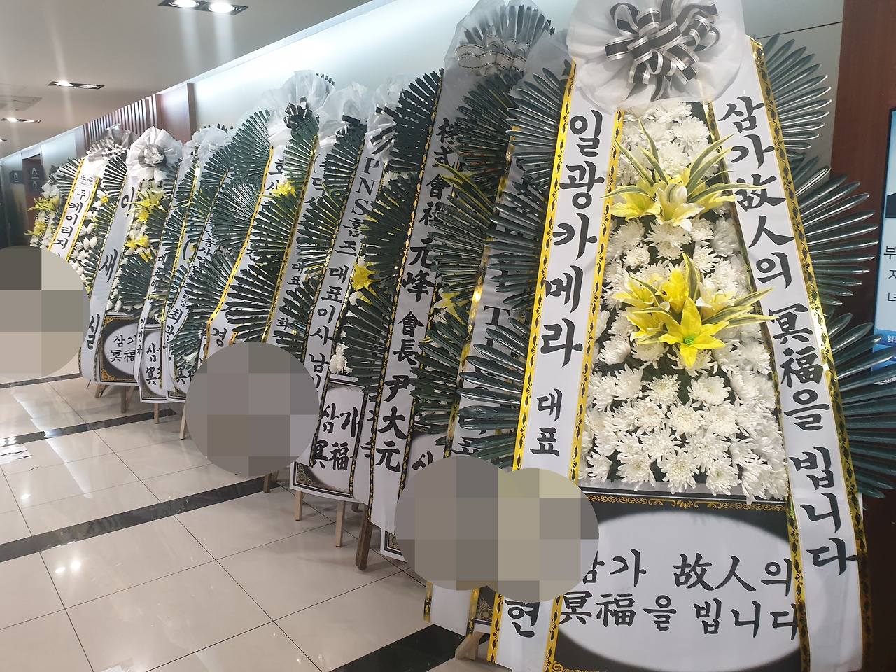 우리 아버지도 아직 살아계시고 힘이 있으니 이렇게 화환들이 사진에도 다 안담기고, 옆집 문턱까지 출입을 방해할 정도로 쌓이지만, 나중에는 어떨지.. 잘 모르겠습니다.