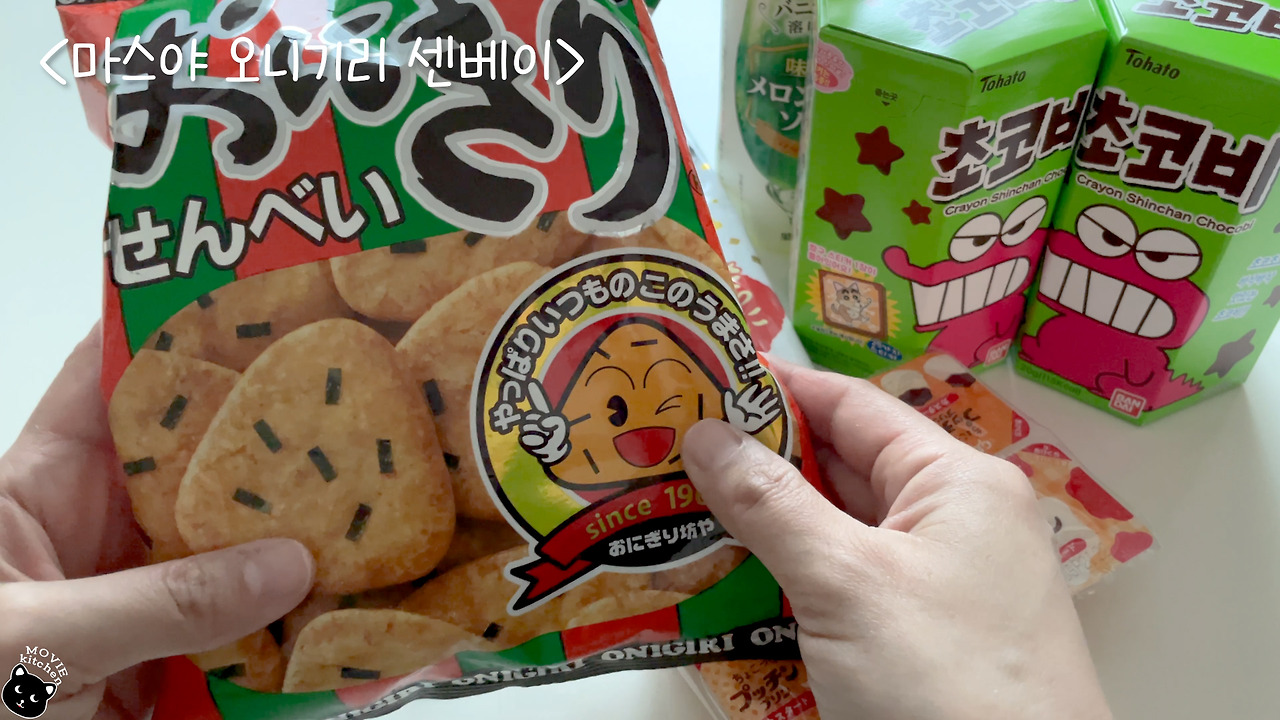 오니기리 모양의 쌀과자다. 작은 김도 붙어있고 아주 귀엽게 생긴 과자였다. 맛은 상상한 맛 그대로였다. 한국에 있는 대표적인 쌀과자 2종(달달한 동그란 쌀과자와 짭짤한 길쭉한 쌀과자) 중 짭짤한 쌀과자와 비슷한 맛이다. 김은 붙어있었지만 김맛이 전혀 나지 않았던 건 좀 아쉽다.