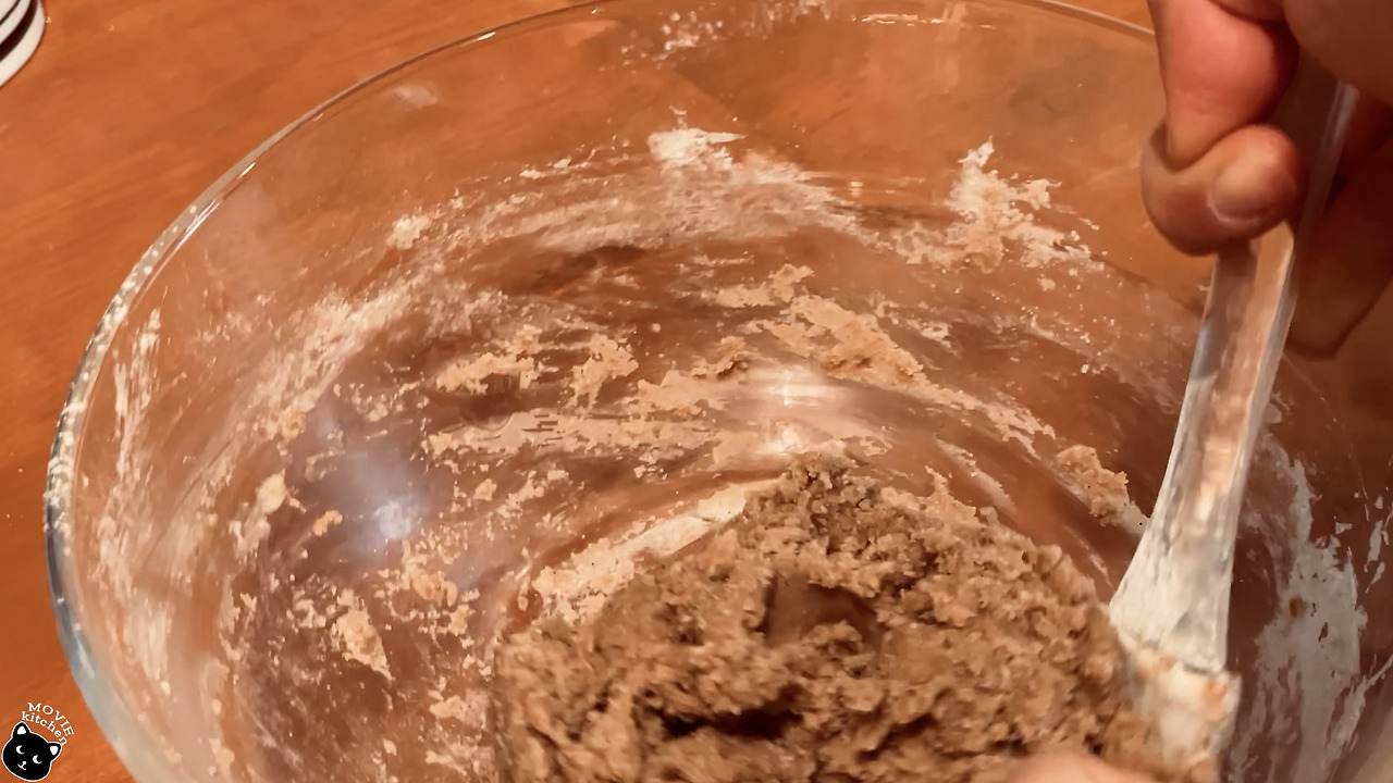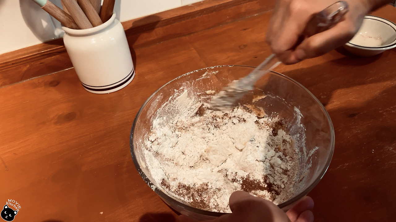 - 박력분(또는 중력분) 90g, 아몬드가루 20g, 계핏가루 3g은 체에 쳐 넣고 한 덩이로 뭉치도록 섞는다.