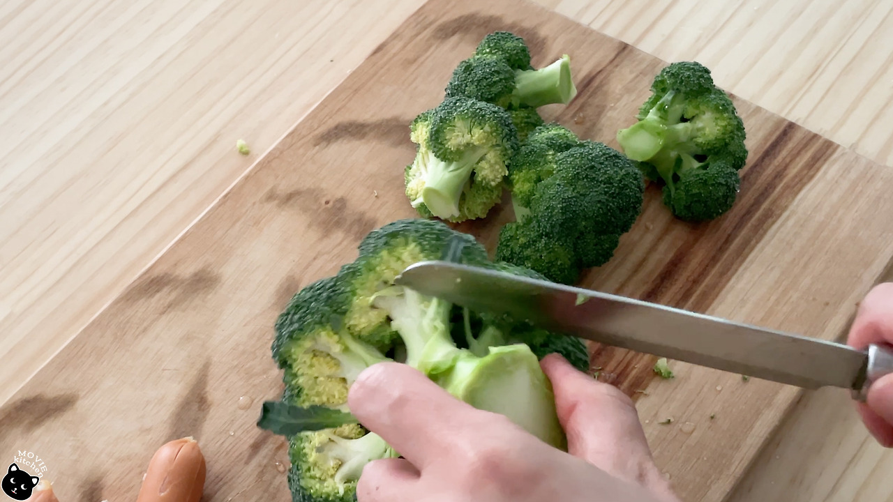 - 브로콜리는 적당한 크기로 자르고 소금 한 꼬집을 넣은 끓는 물에 살짝 데친다.