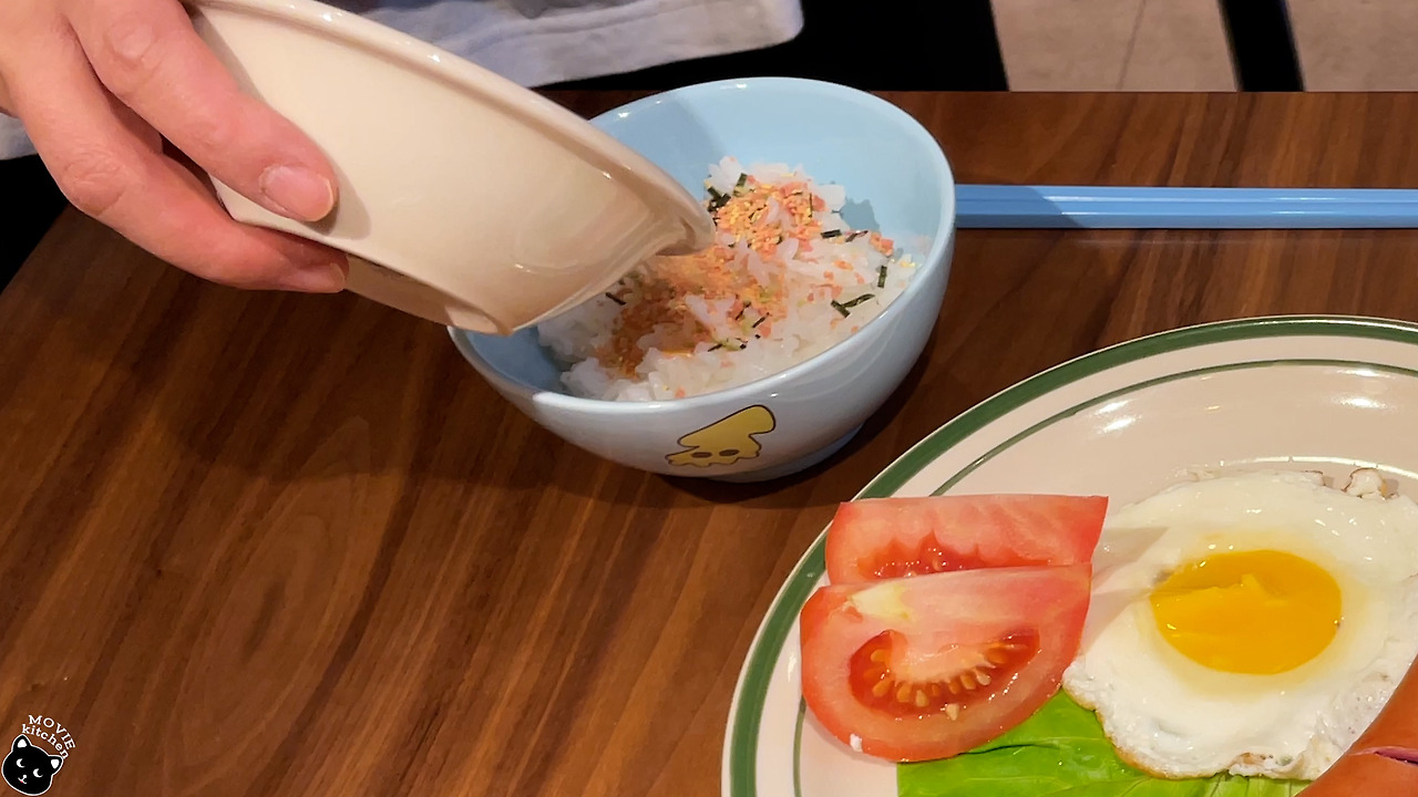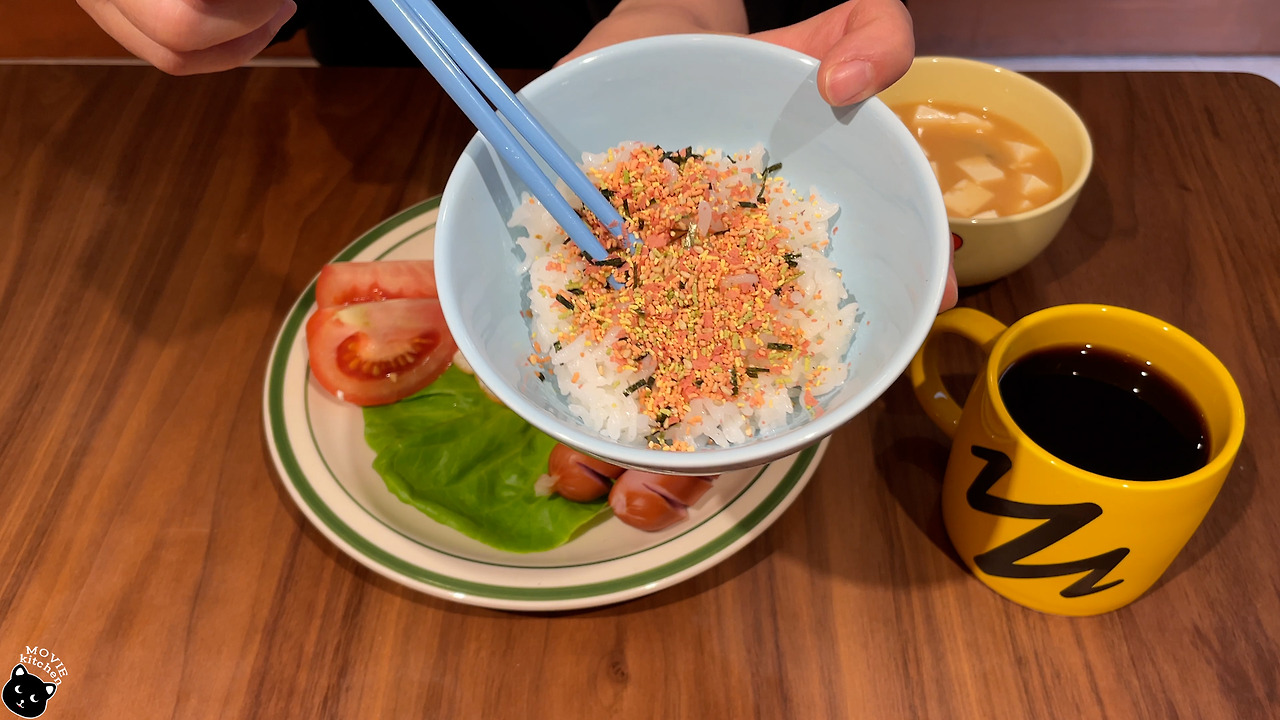 - 뜨거운 쌀밥 위에 후리가케를 솔솔 뿌려준다.