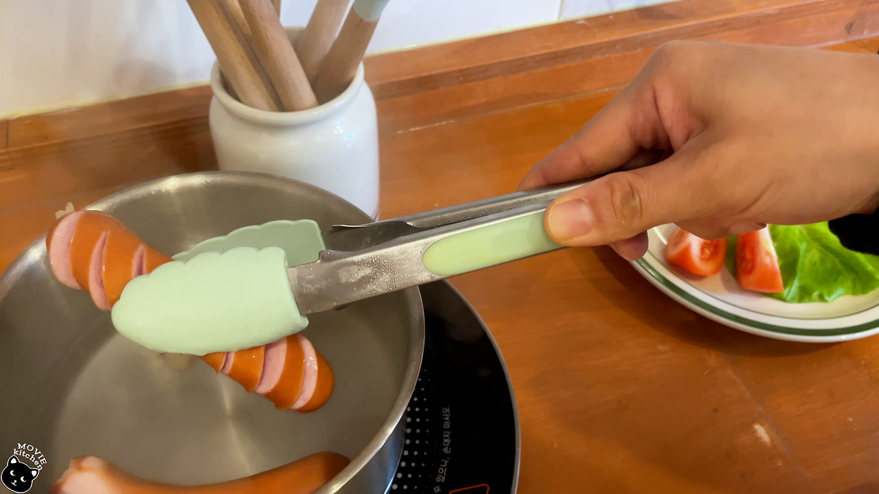 - 소시지는 끓는 물에 살짝 데친다.