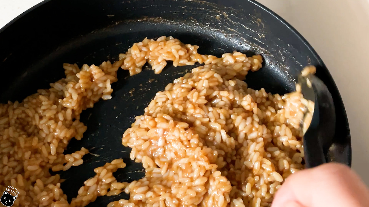 2) 밥 1인분을 넣고 잘 섞으며 센 불에서 볶아 수분을 어느 정도 날려준다.