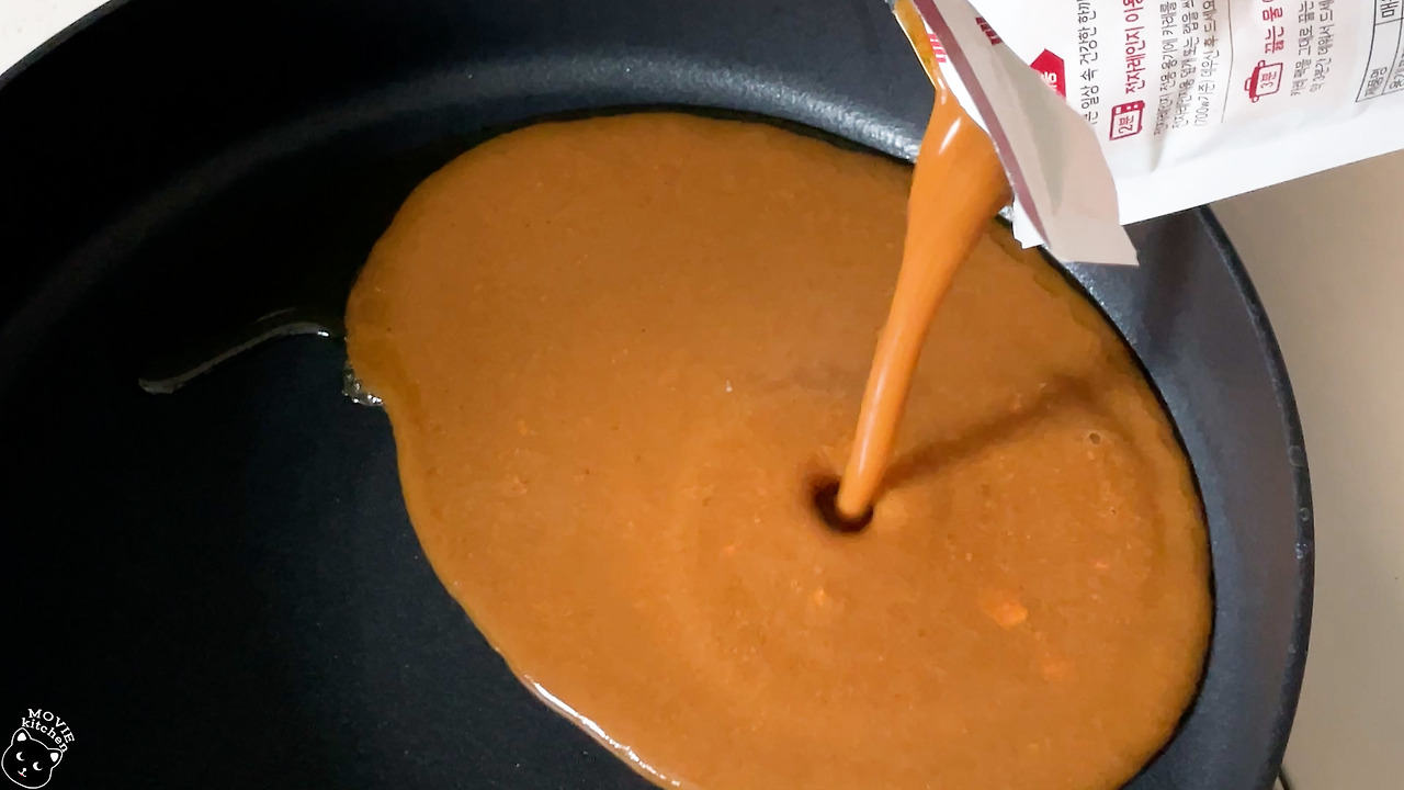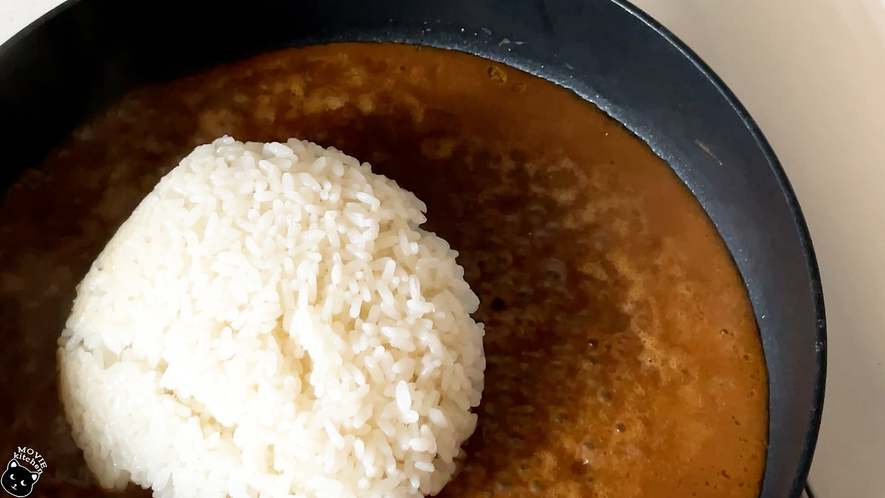 *고형 또는 가루 카레에 물을 약간 섞어 만들어도 상관은 없지만 채소나 그 밖의 재료가 들어가지 않아 감칠맛은 부족하다. 그래서 채소나 고기 등의 재료는 들어가지만 건더기가 눈에 보이지 않는 매운맛 인스턴트 카레를 사용하면 좋을 것 같다. 참고로 나는 하코야 액상 커리와 매운 채담카레를 섞어 썼다.