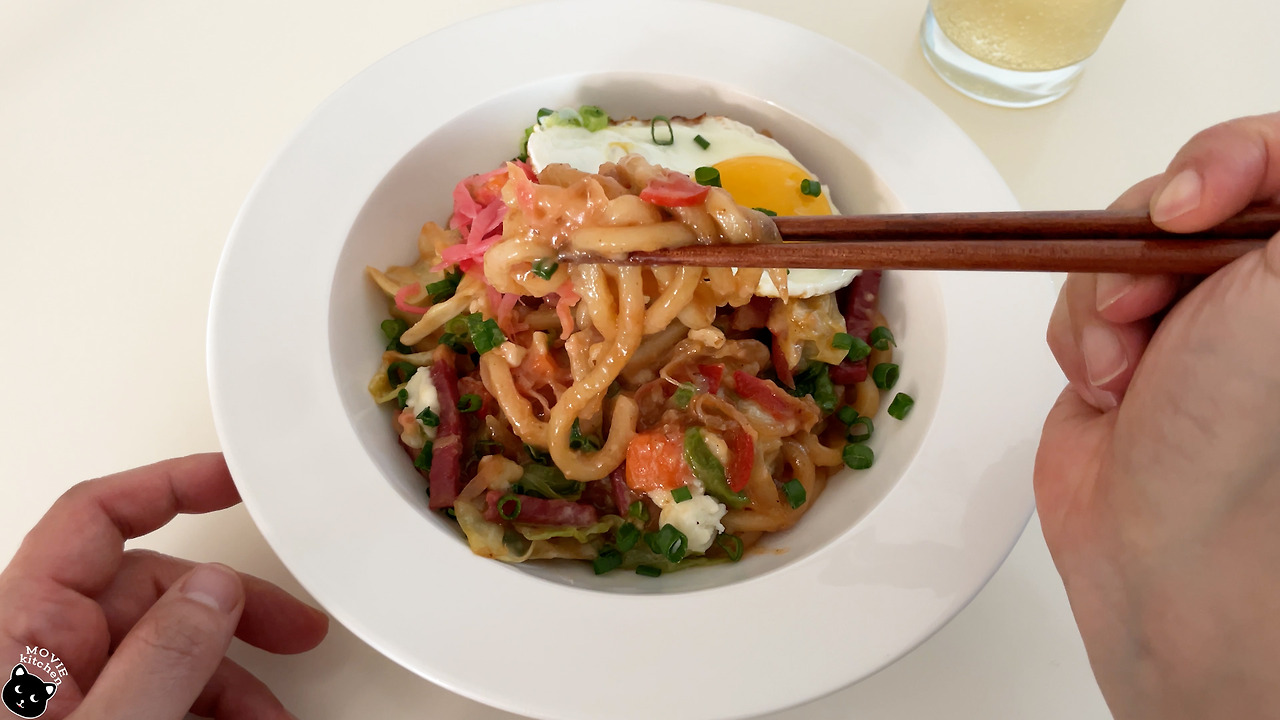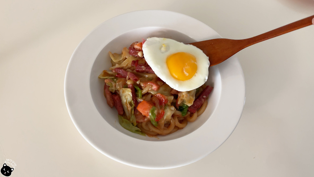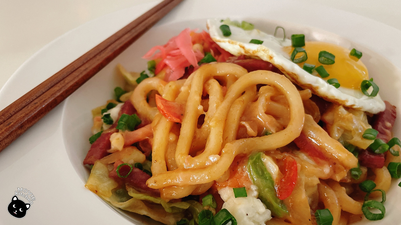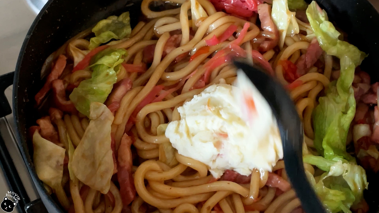 그 음식들 중 가장 처음으로 만들어 본 음식은 스즈메의 특별한 비법이 담긴 야끼우동이었다. 야식으로 야끼우동을 만들어 먹는 장면이 있었는데 스즈메와 함께 있던 언니들은 야끼우동에 참치마요를 넣을 생각이었던 것 같다. 그러나 우리 스즈메는 자기 집에선 감자샐러드를 넣는다며 곧바로 감자샐러드를 넣은 야끼우동을 선보였다. 그때 언니들 반응이 뭐? 헐? 대충 이러했었는데 그 반응으로 짐작해 보자면 야끼우동에 감자샐러드를 넣는 건 흔한 방법은 아닌 듯 보인다. 하여튼 나도 그 흔하지 않은 야끼우동이 먹어보고 싶어 졌고 다음날 바로 만들어 보았다. (*개봉날에 맞춰 편집하느라 힘들었다...)