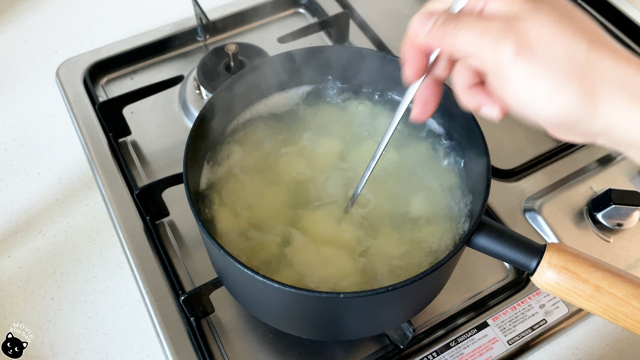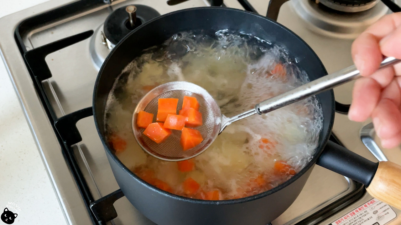- 감자, 당근은 물에 삶는데 당근은 물이 끓어오르고 5분 뒤 먼저 건져내고 감자는 푹 익혀준다.