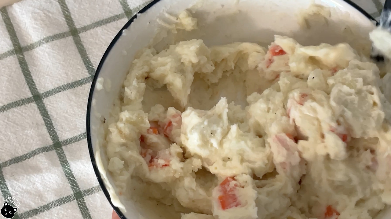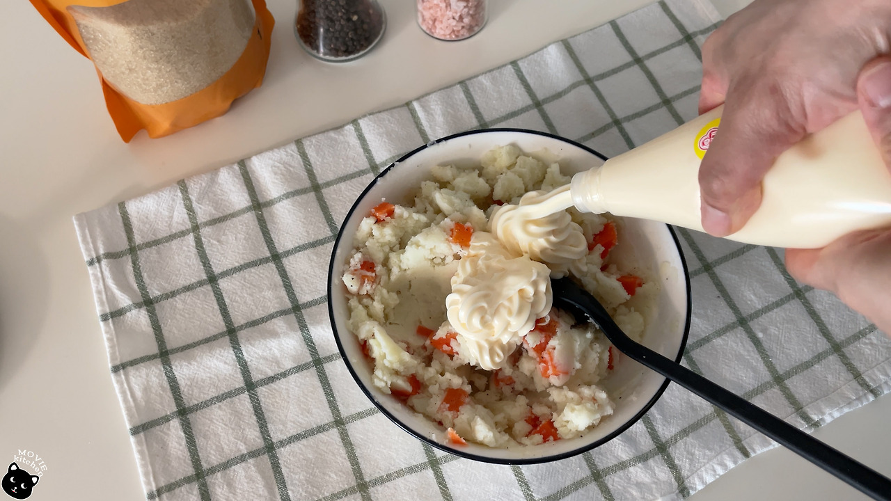 - 감자는 뜨거울 때 으깨고 삶은 당근, 소금, 후추, 설탕, 마요네즈를 넣고 잘 섞어준다.
