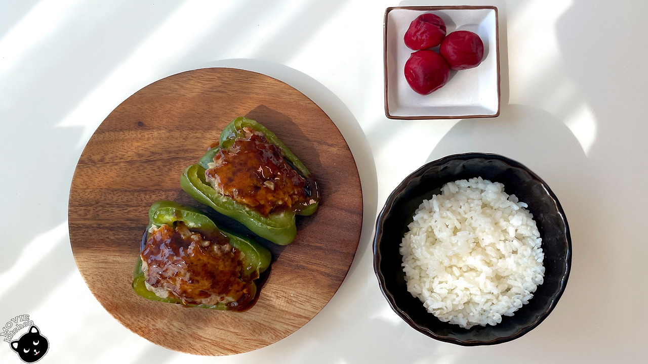 또한 나는 이런 음식들을 만들면 촬영을 하면서 먹어야 하기 때문에 어떻게 깨끗하게 먹을지에 대해서도 고민하는 편인데 피망 니쿠즈메는 크기가 좀 큰 편이라 먹을 때 질질 흘리거나 불편할 수도 있겠다 싶어 고민했었다. 그런데 웬걸...? 피망이 젓가락으로 아주 부드럽게 잘렸다. 오...! 맛있는 게 깔끔하게 먹을 수 있는 음식이라니 정말 마음에 쏙 드는 음식이었다. 게다가 조리과정까지 간단하다. 오래간만에 마음에 쏙 드는 애니 음식을 만났다. 정말 이 음식은 꼭 만들어보길 추천한다. 완전 대 존 맛...!