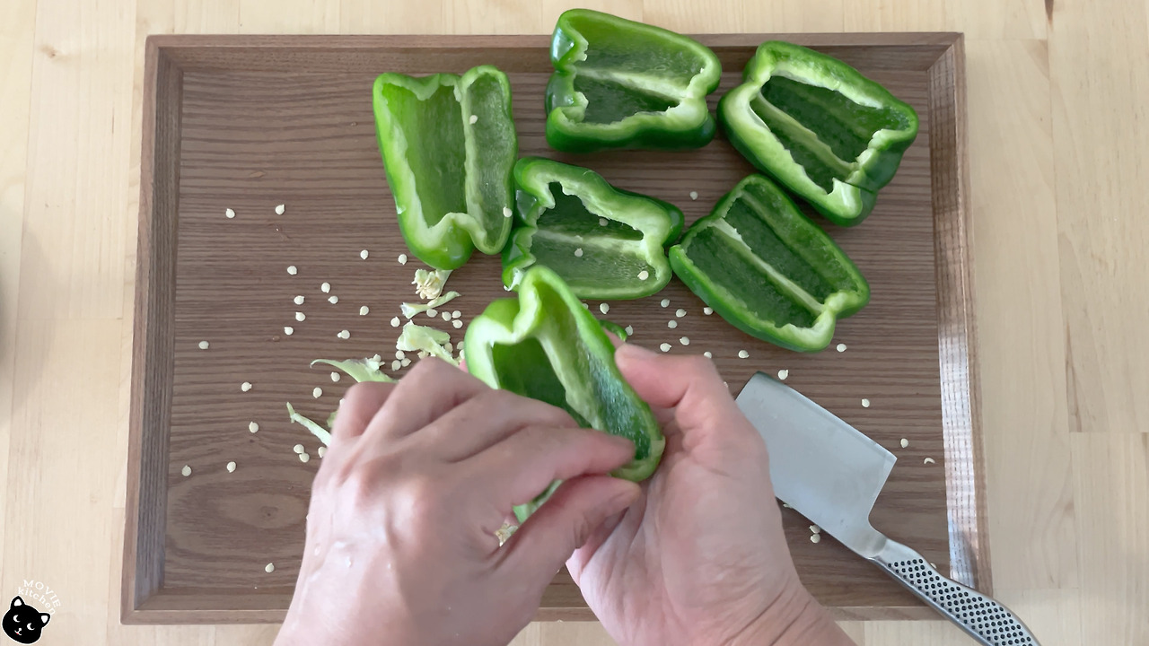 이번에 만든 음식은 짱구가 미치도록 싫어하는 피망 요리다. 피망은 보통의 5살 아이들은 좋아하지 않는 채소다. 5살이니까 그럴 수 있다고 생각한다. 근데 조금 의아한 점이 있다면 짱구는 보통의 5살과는 다르게 냄새가 지독한 낫또도, 엄청 쓴 여주도 잘 먹는다는 점이다. 피망만 먹지 않을 뿐 호불호가 갈리는 거의 모든 음식을 다 먹는다. 짱구의 식성을 단서로 피망을 싫어하는 이유를 찾을 수는 없었다. 정말로 피망 빼고는 다 잘 먹는다… 생각해버니 무언가를 싫어하는데 꼭 이유가 필요한 건 아니니까 그럴 수도 있겠다 싶다.