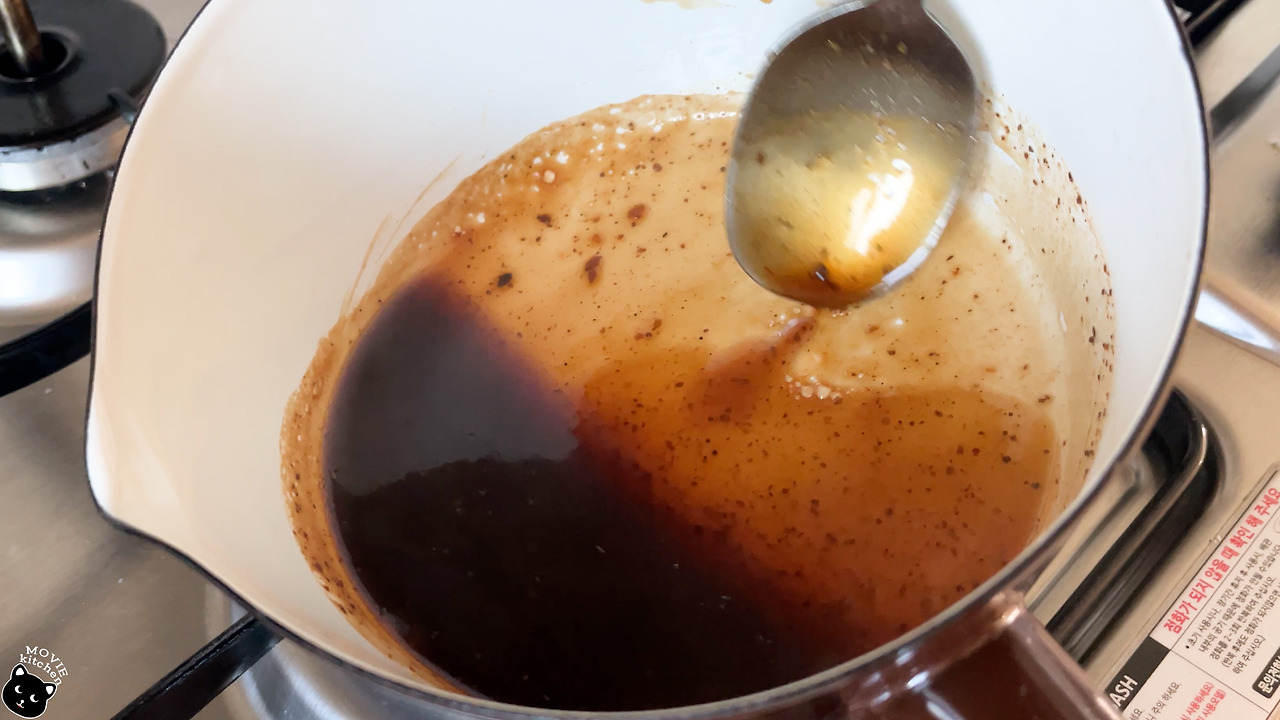 4) 우스터소스, 돈가스 소스를 1:1 비율로 넣고 살짝 데워준다.