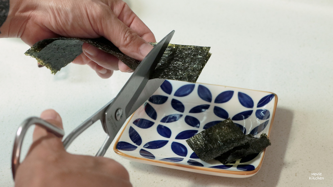 5) 김은 떡 크기에 맞게 정사각형으로 자른다.