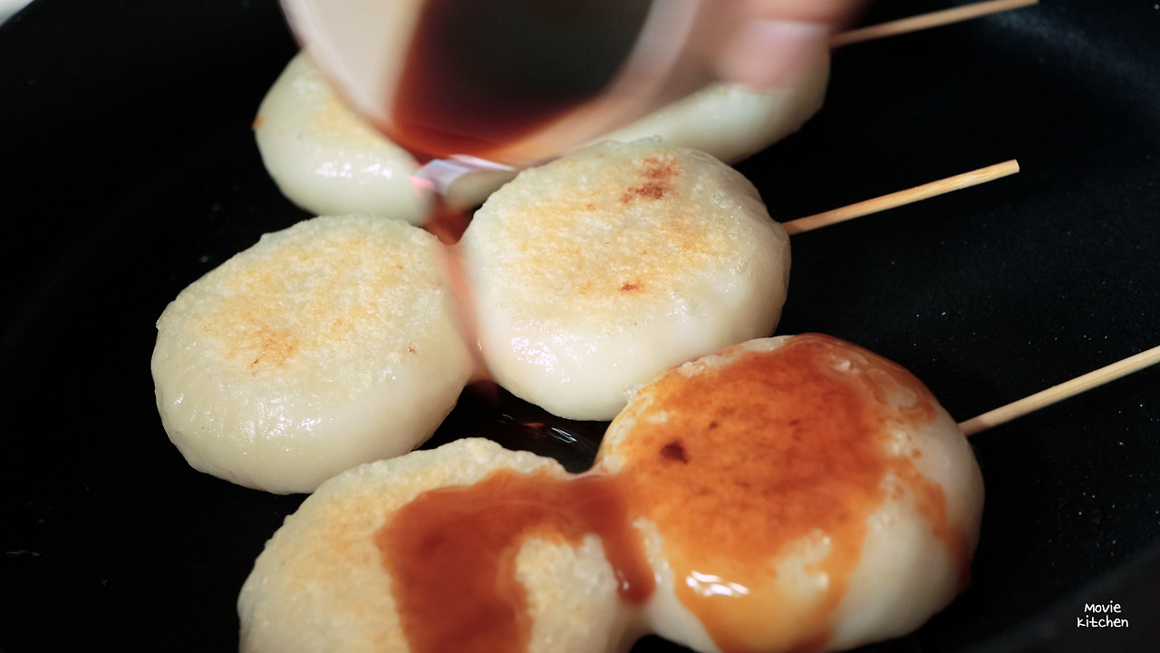 이 음식이 귀여워 보여서 그랬는지 구독자들이 많이 궁금해했었다. 사실 먹어보면 아~~~ 하는 맛이다. 일본식 간장소스, 그리고 굽거나 튀긴 모찌는 한번쯤은 다 먹어본 아는 맛이기 때문이다. 그래도 구독자가 원하면 만든다..!