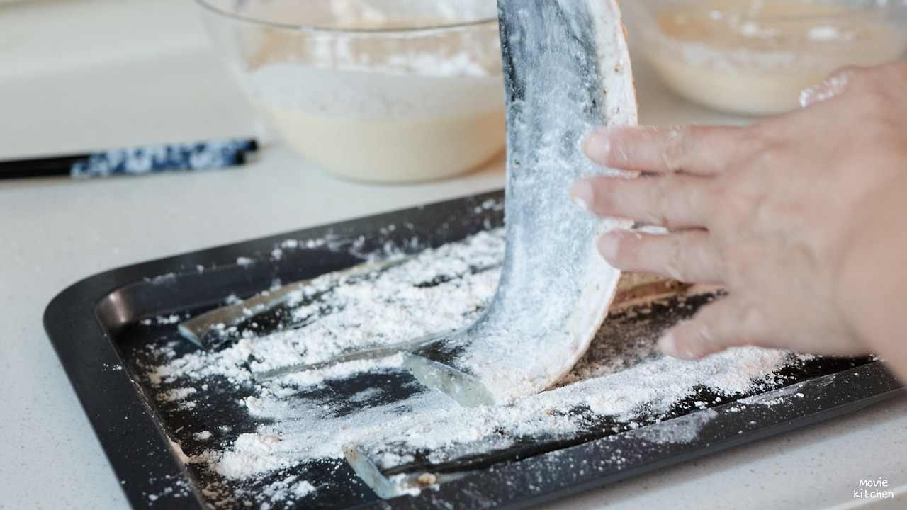 - 반죽의 30%를 덜어내 묽은 반죽도 만들어 준다.