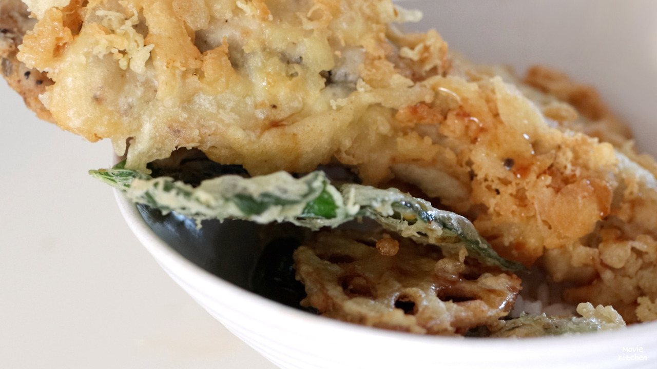 - 밥 위에 쯔유(또는 카에시)를 뿌리고 튀김을 올린다.