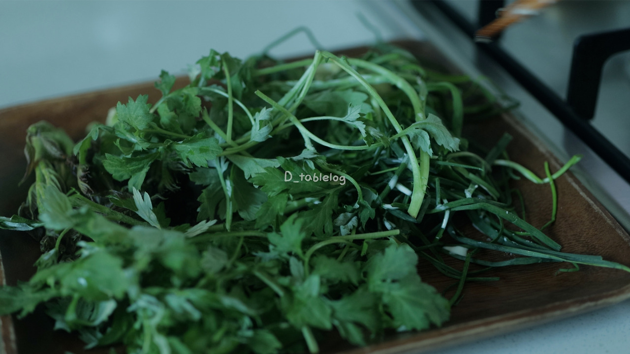 - 나물을 깨끗이 씻어 물기를 완전히 제거한다.