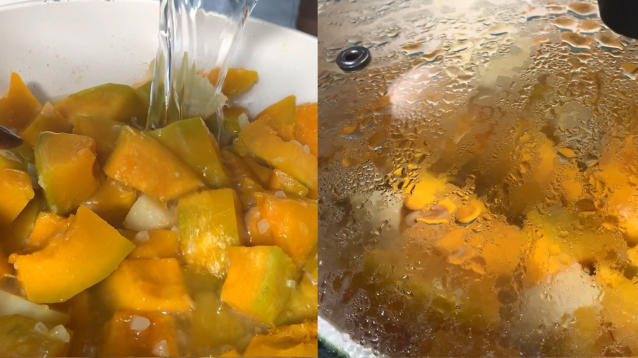 4) 재료들이 살짝 잠길 정도로 물을 붓고 15분간 중간 불로 끓여준다.