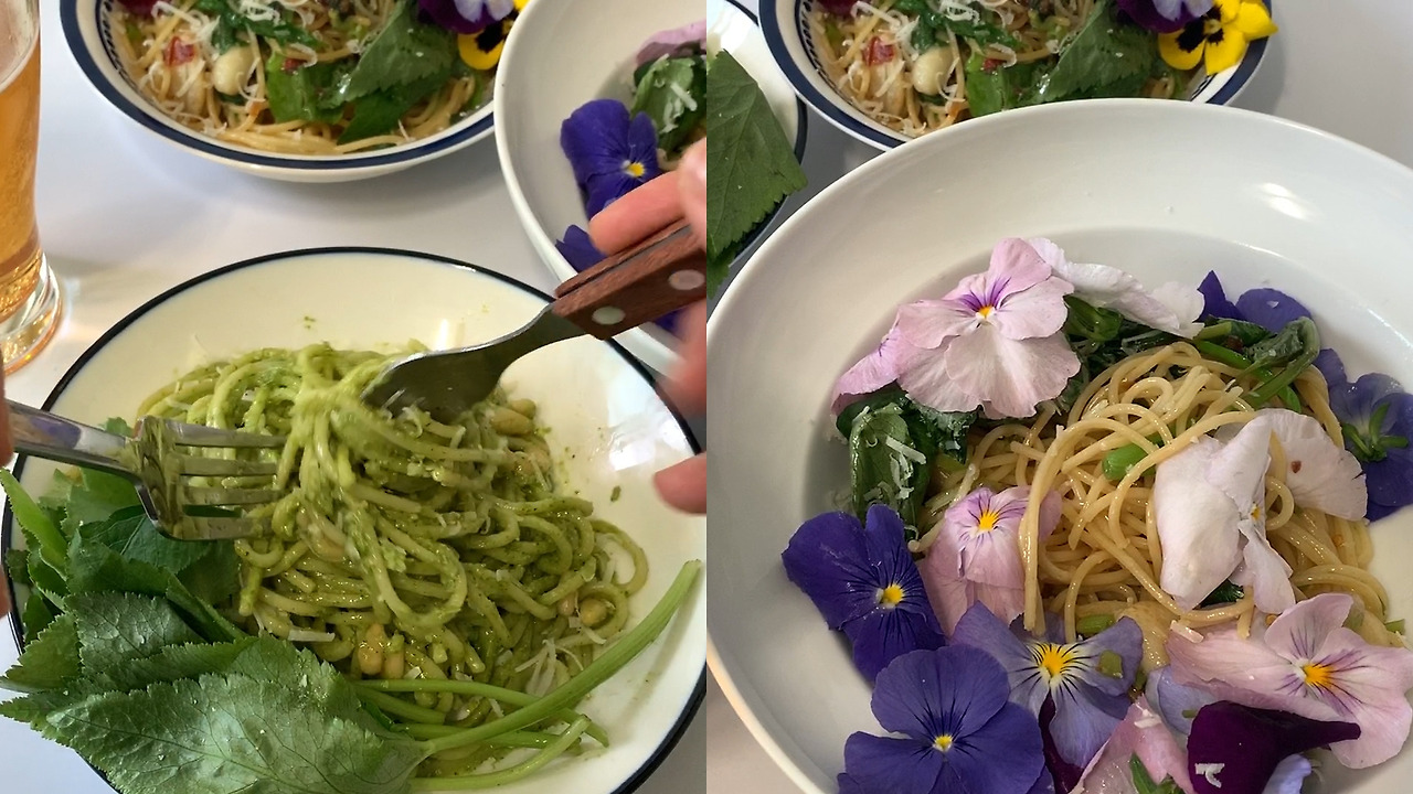 영화 보면서 오래전부터 꽃이 무슨 맛일지 궁금했었는데 그냥 풀 뜯어먹는 맛이랄까...? 생각보다 향이나 맛이 강하지 않았고 잎채소를 먹는 느낌이 들었다. 딱히 설명할 만한 맛은 없었지만 너무 예쁘고 내가 꽃을 먹는다는 느낌 때문에 기분이 묘하게 좋았다. 참나물 오일 파스타는 진짜 맛있으므로 모두 한 번씩 해 먹어 보길 추천한다. 참나물 페스토는 만들기도 번거로운 과정 없이 쉽게 만들 수 있어서 요놈 참 괜찮다고 생각했는데 활용도가 높아서 더 마음에 들었다. 파스타도 좋고 피자를 만들 때 토마토소스 대신 베이스로 깔아도 좋을 것 같다. 그냥 간단히 토스트 먹을 때 빵에 발라 먹기도 좋다.