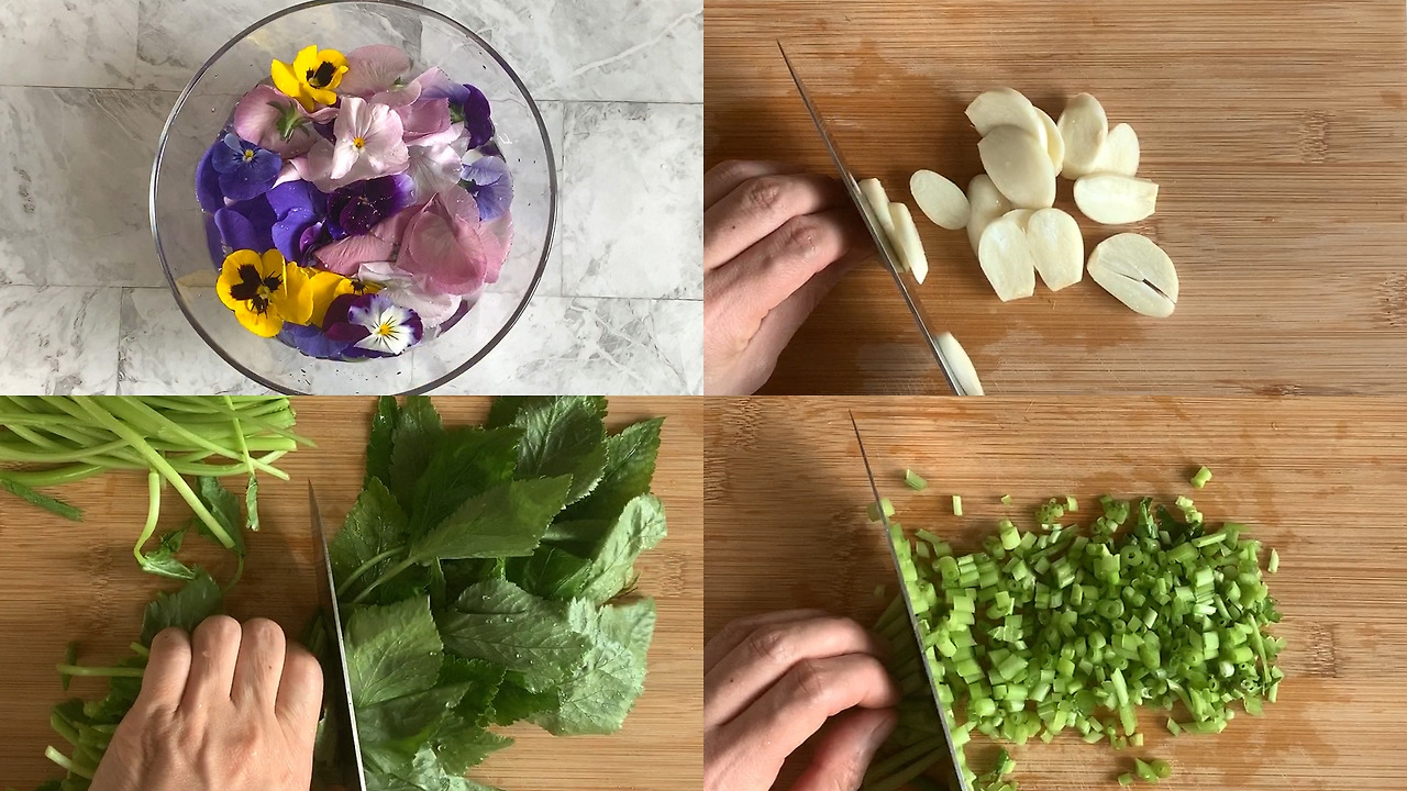 1) 식용꽃은 미리 꺼내서 찬물에 담가 둔다.