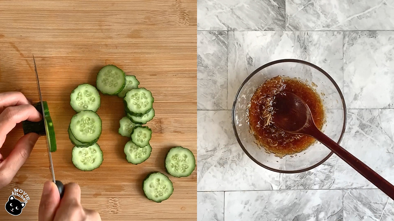 1) 오이 1개는 적당한 두께로 썰어준다.