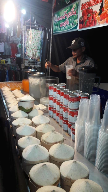 시장이 길게 늘어선 바깥쪽에 자전거를 대고, 보이기만 하면 묻지도 따지지도 않고 사서 마시는 코코넛수를 일단 한잔 사서 시야 확보를 위해 높은 연단 같은 곳으로 올라가 본다.