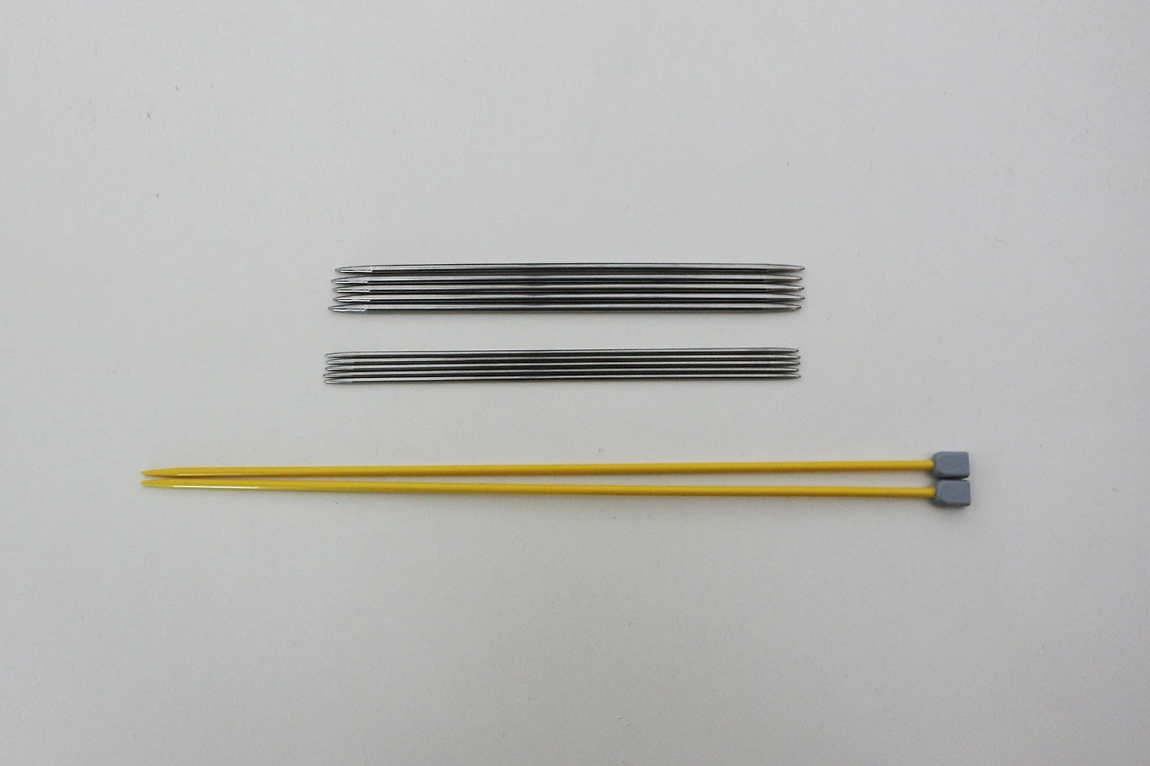 내가 하고 싶은 뜨개질이 대바늘 뜨기인지 코바늘 뜨기인지를 우선 알아야 한다. 둘은 표면의 패턴이 다르다. 방법도 다르다. 대바늘 뜨기는 한 쌍의 바늘을 양손에 하나씩 쥐고 코를 엮는다. 코바늘은 울사 전용과 레이스사 전용이 있고, 한 개의 바늘로 코를 엮는 기법이다. 대바늘과 코바늘은 두께가 다양한데 실의 두께에 따라 번호로 구분되며, 호수가 커질수록 굵은 바늘이다. 실의 두께나 디자인에 맞추어 고른다.