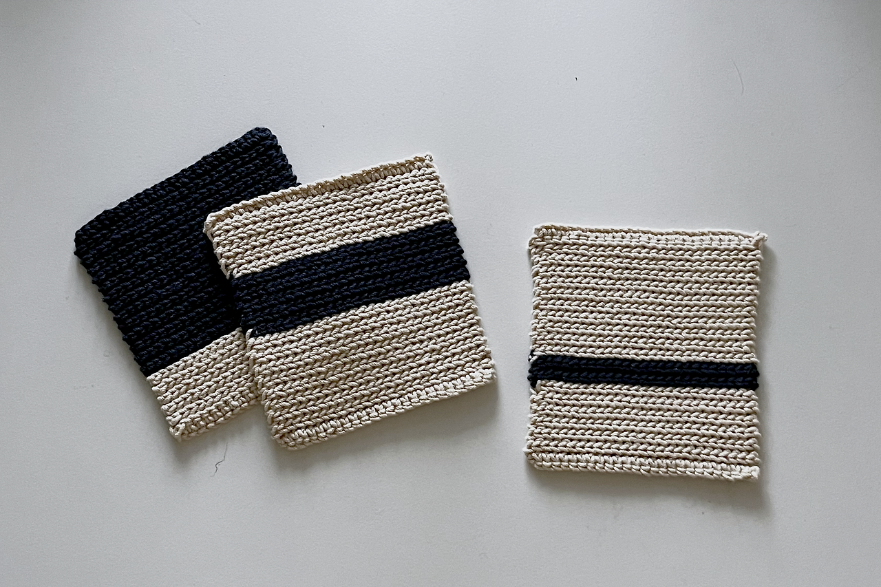 풍성하고 꾸덕한 필링이 채워진 낮은 파이는 짧은 뜨기가 떠오른다. 고리 하나, 즉 코 하나를 기둥으로 면을 만들어 간다. 밀도감 있게 채워지고 색을 바꿔도 가장 자연스러워서 나의 최애 기법이다.