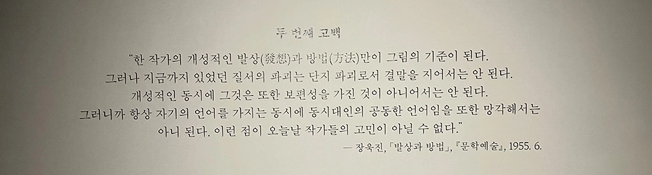 우리는 전시장에 들어가면 늘 일행이 아닌 냥 헤어진다. 각자 실컷 감상의 시간을 즐기고 출구에서 다시 만난다. 이번 전시는 꽤 오래 걸렸다. 2시간 30분을 훌쩍 넘기고야 만났다. 친구 역시 표정이 상기되어 있다. 감상이 길어질 것 같아 밥을 멀미 나게 든든히 먹고 왔다는 친구의 준비성에 웃음이 났다. 점심 식사 대신 덕수궁 길 건너에 있는 스타벅스로 향했다. 친구와 나는 김환기 작가도 좋아한다. 한국의 근대 미술가들 디자인 감각이 너무 힙하다며, 자랑스럽다고 한참 감상을 나누었다.