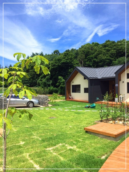 “마당은 그리 크지 않았으면 좋겠어. 그저 꽃 몇 개 심을 화단 한 개랑 김장할 때 야채 편하게 씻을 야외 수돗가와 지효 수영장 설치할 공간만 있으면 되지 뭐.”